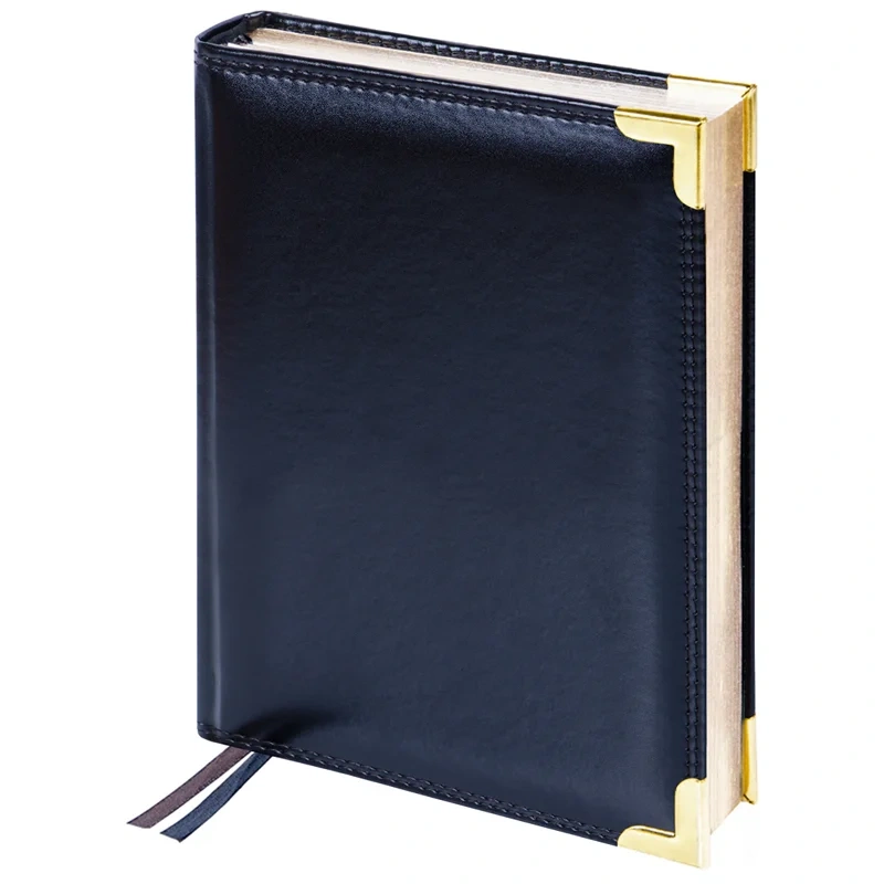 Внутренний блок содержит 160 листов тонированной офсетной бумаги плотностью 80 г/кв.м. Страницы оформлены в линейку и напечатаны в две краски. Перфорация уголков и вырубка блока облегчают навигацию. Скруглённые углы листов обеспечивают комфорт при перелистывании. Синий обрез подчёркивает аккуратный внешний вид ежедневника.