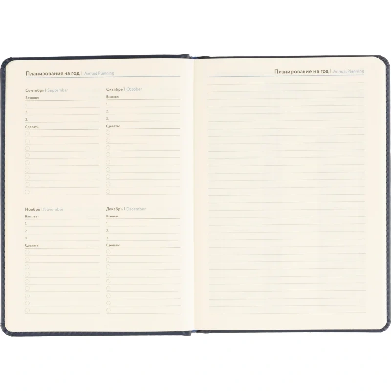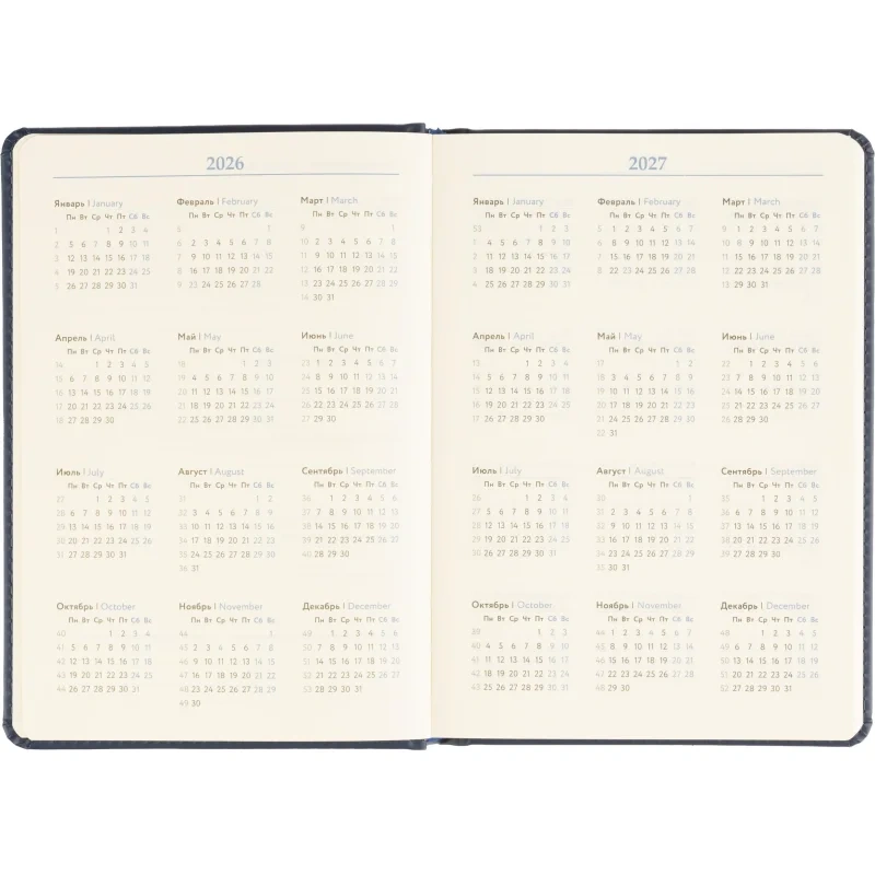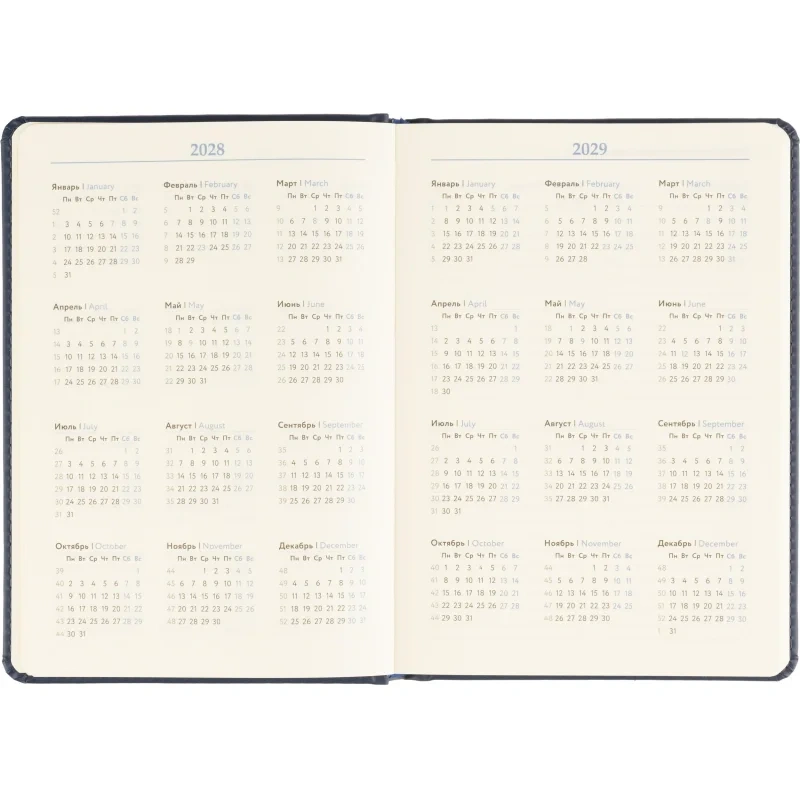Размер изделия составляет 14×20 см. Ежедневник дополнен календарём на два года и может быть использован для персонализации.