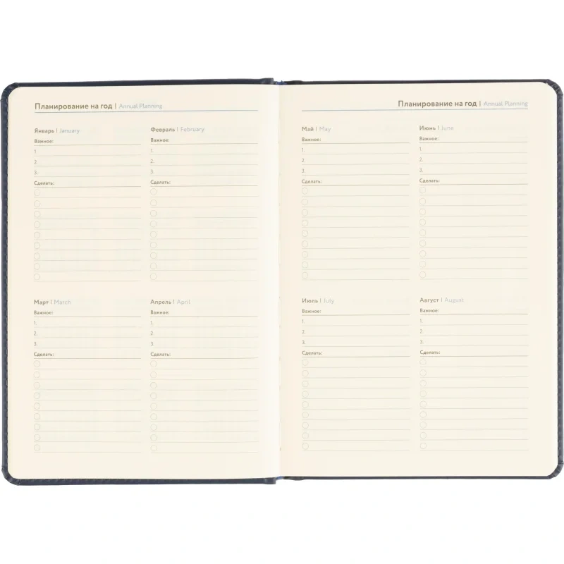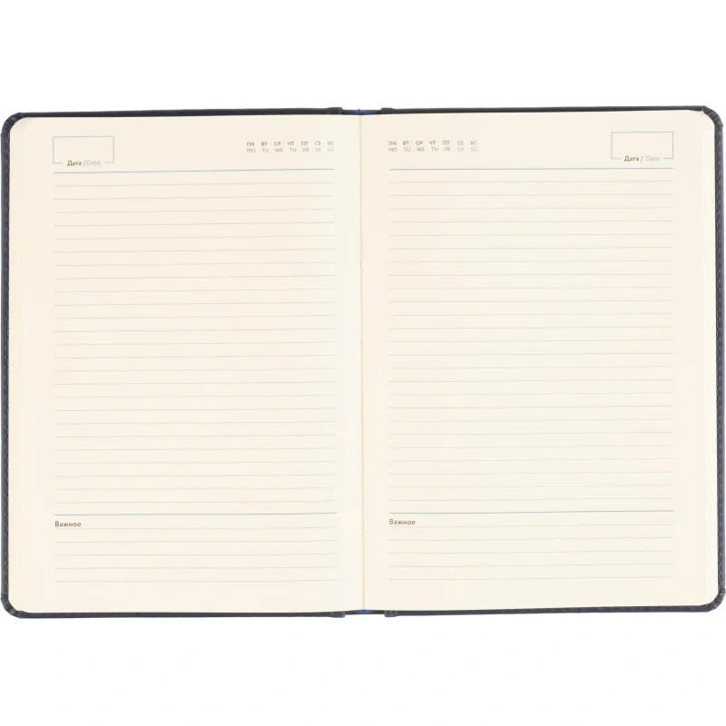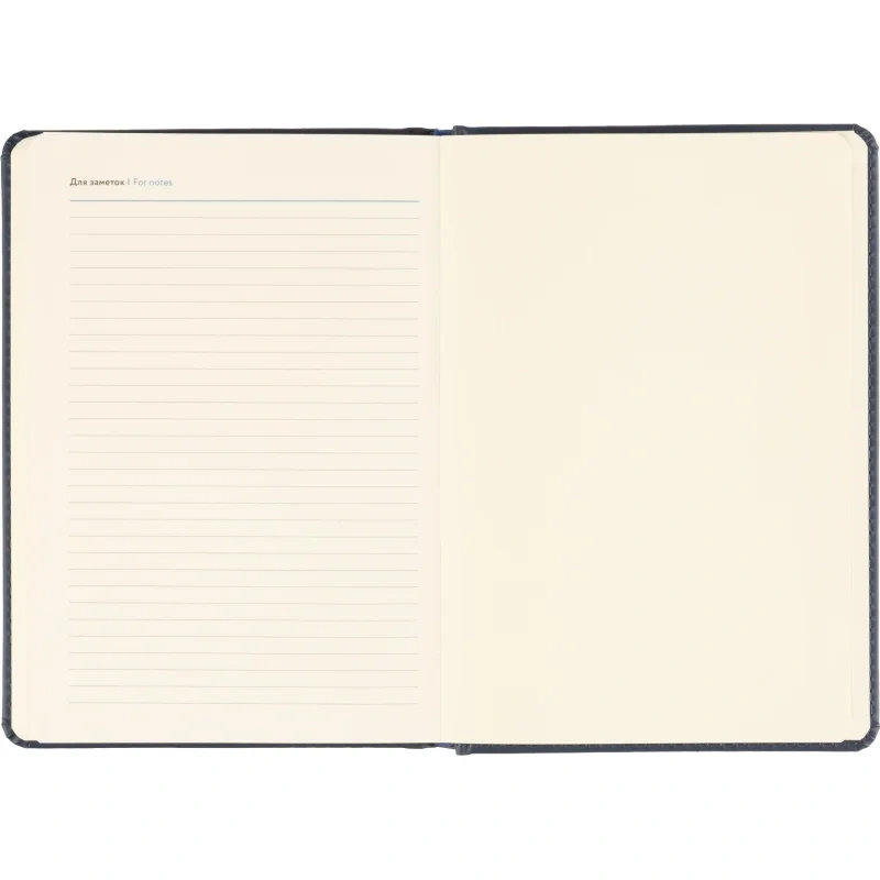 Ежедневник формата А5 предназначен для повседневных записей, планирования задач и ведения заметок. Внутри — 136 листов из тонированной офсетной бумаги плотностью 80 г/кв.м с линовкой в линейку. Страницы напечатаны в две краски, что улучшает читаемость и делает блок визуально аккуратным.