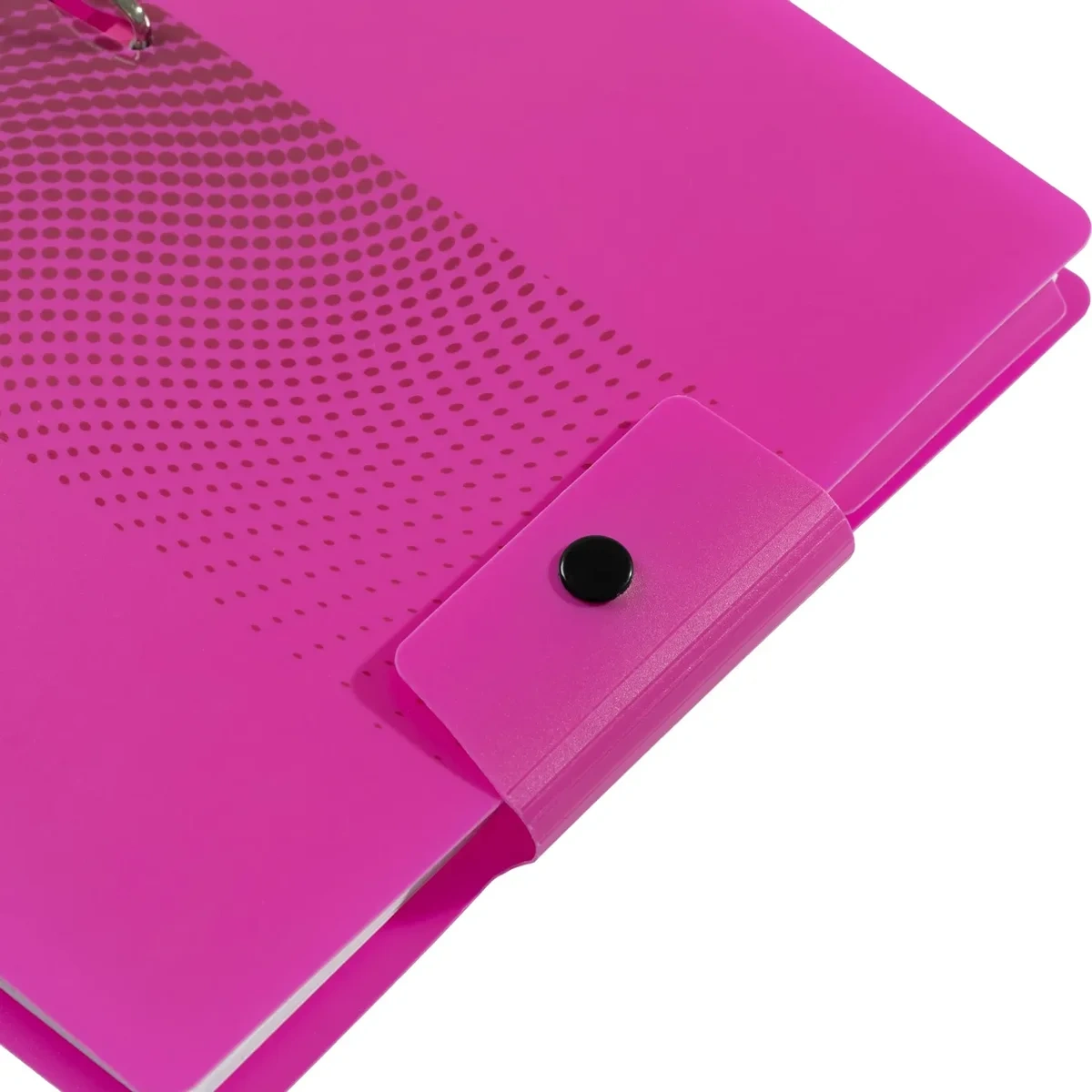 Ежедневник оснащён кольцевым механизмом, который обеспечивает удобный переворот страниц. Обложка изготовлена из плотного пластика с приятной на ощупь поверхностью и закрывается на кнопку.