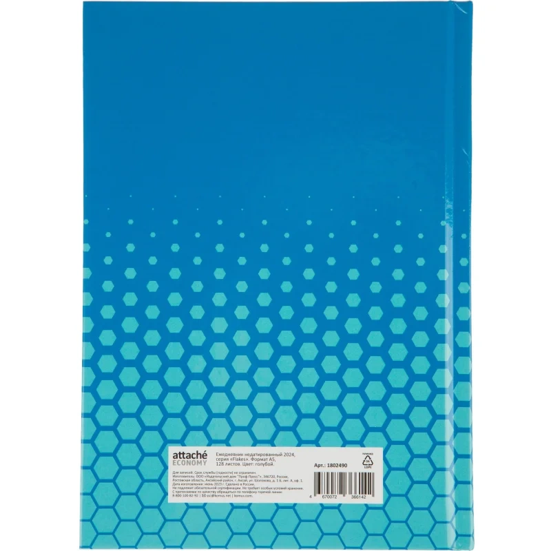 Ежедневник датированный Attache Economy Flakes А5 на 2024 год 128 листов. Обложка из цветного твердого картона с глянцевой ламинацией. Стиль обложки универсальный, офисный. Тип крепления - склейка. Бумага белый офсет, плотностью 55-65 г/кв.м, печать в блоке в 1 краску. Содержит информационно-справочный блок. Нет петли для ручки. Размер: 145х203 мм. Ежедневник отлично подойдет для работы в офисе.