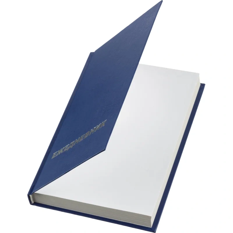 Обложка из бумвинила на твёрдом картоне оформлена в сдержанном офисном стиле и окрашена в синий цвет. Она не только защищает внутренний блок, но и придаёт изделию деловой вид. Предусмотрена возможность тиснения фольгой. Крепление выполнено прошивкой, что обеспечивает прочность и долговечность.