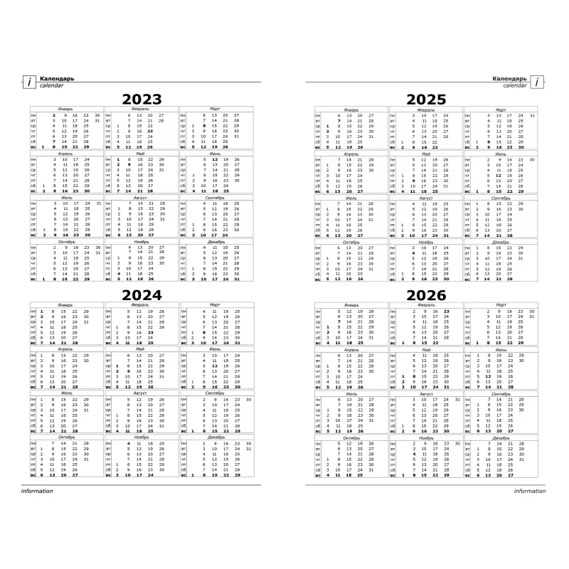 В состав информационно-справочного раздела входят: внутренние календари на 2023–2026 годы, коды телефонов России, СНГ, Балтии, международные коды, данные об аэропортах Европы, государственные праздники РФ, автомобильные коды, размеры одежды, штрихкоды, единицы измерения, список стран с указанием столиц, официальных языков и валют.