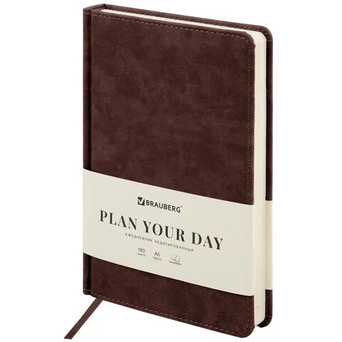 Недатированный ежедневник формата А5 размером 130x210 мм с мягкой обложкой из искусственной кожи бирюзового цвета в ярком эмоциональном стиле. Внутренний блок содержит 272 страницы офсетной бумаги плотностью 70 г/кв.м., с линейной разметкой и печатью в две краски. Бумага бежевого цвета, с цветным бирюзовым обрезом.