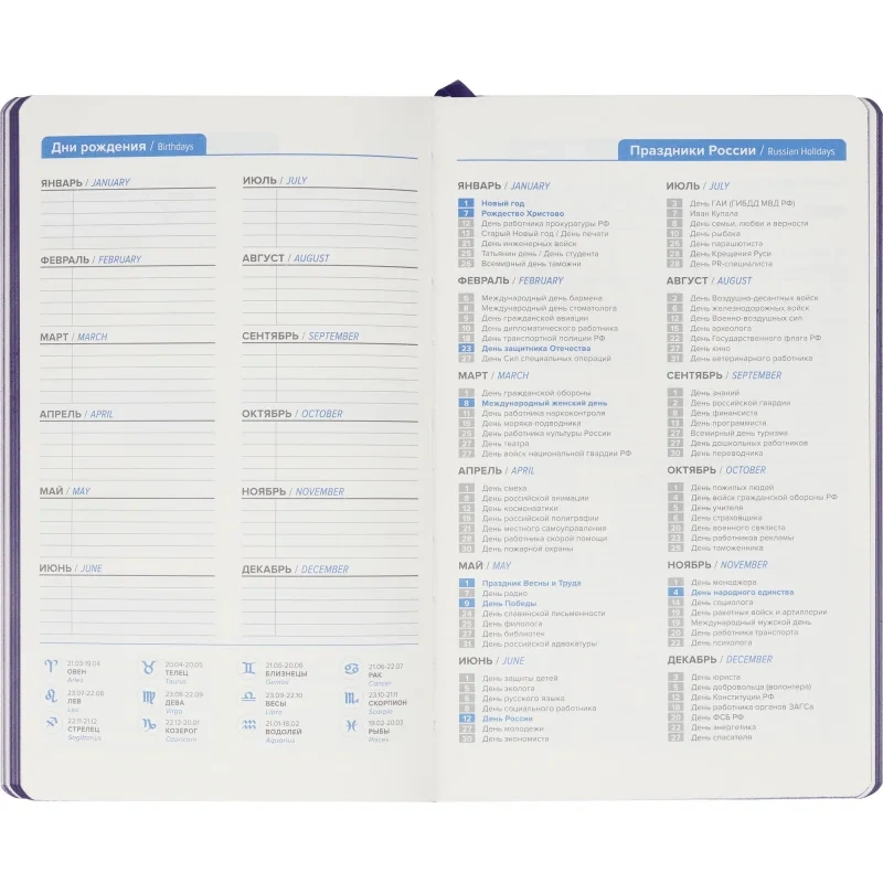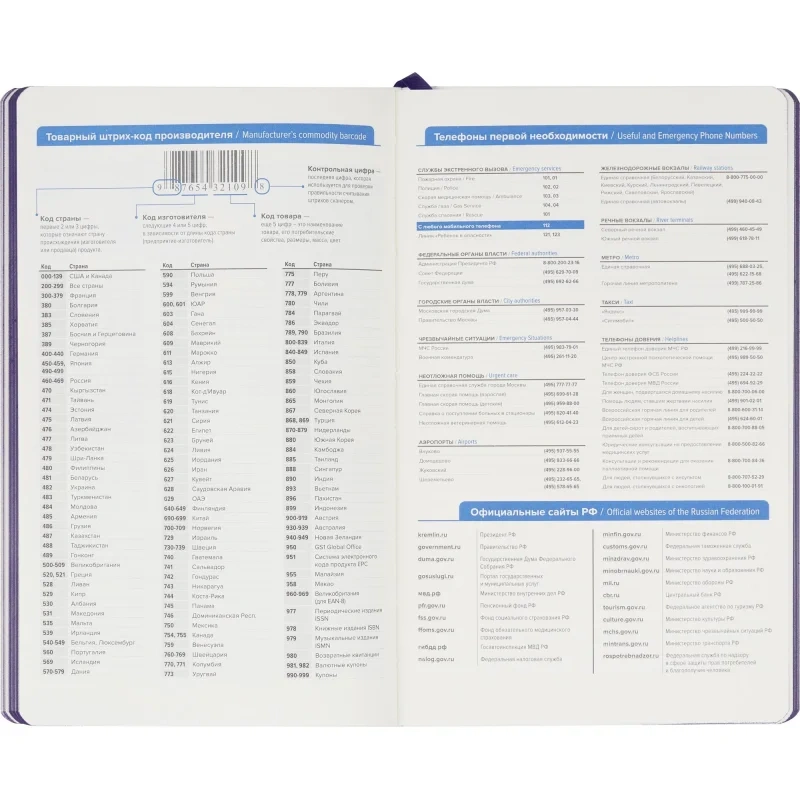 Ежедневник недатированный ATTACHE FLEX фиолетовый А5, 136 л. бежевый блок Ежедневник формата А5 недатированный, цвет фиолетовый 130x210 мм, ляссе фиолетового цвета, 272 страницы, блок в 2 краски, календарь на 2024-2027 гг. Мягкая обложка выполнена из искусственной кожи высокого качества универсального, офисного стиля. Блок: офсет 70 г/кв.м (линейка), бумага бежевого цвета. Содержит информационно-справочный блок - праздники России, единицы измерения, питание и расход калорий, товарный штрих-код производителя, телефоны первой необходимости, официальные сайты РФ. Нет петли под ручку.