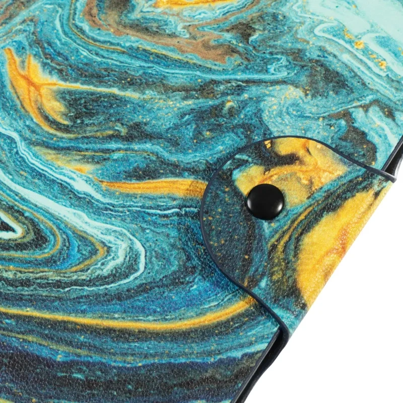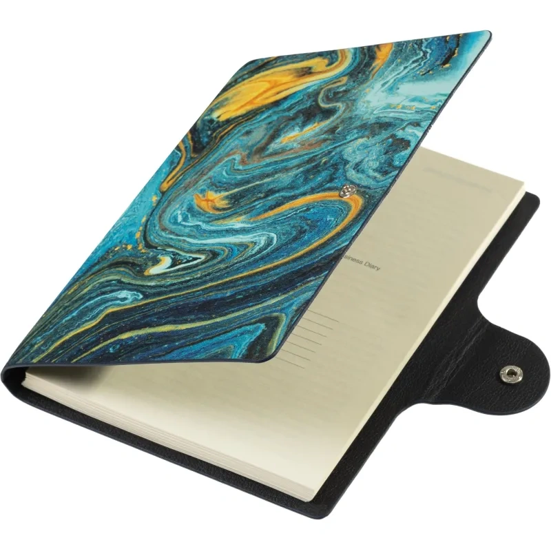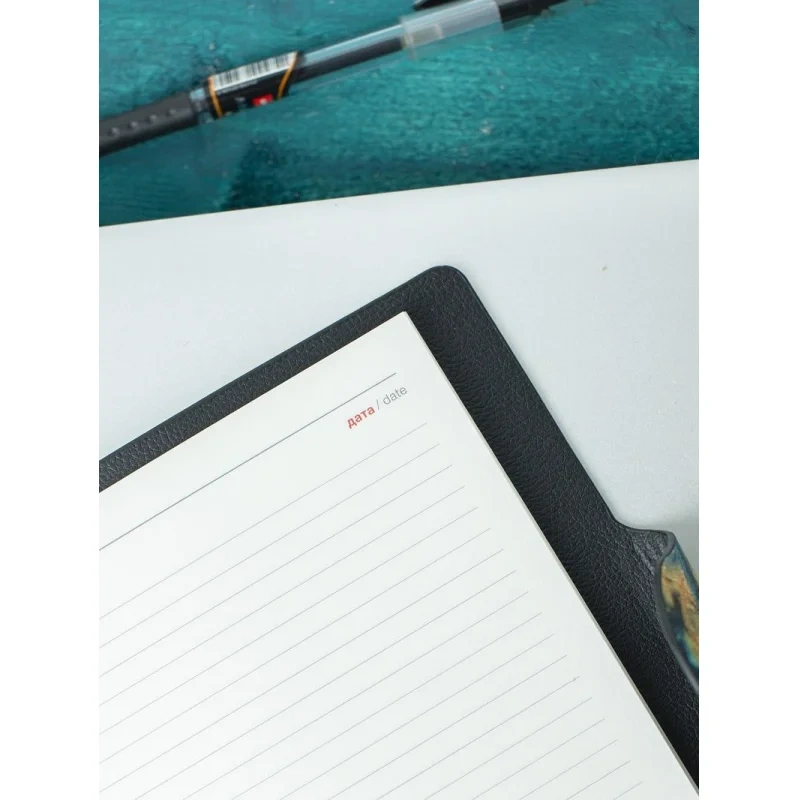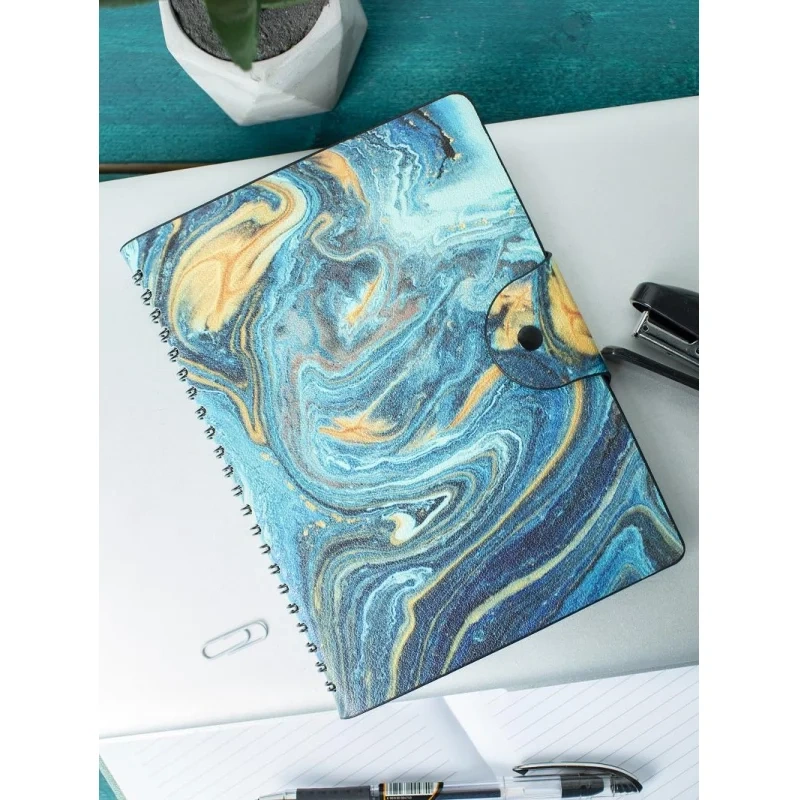 Ежедневник выполнен в бирюзовом цвете с креативным дизайном. Мягкая обложка из приятной искусственной кожи оснащена фигурным клапаном на кнопке, который защищает страницы от растрёпывания. Крепление на полускрытую спираль позволяет легко удалять листы, не повреждая блок.