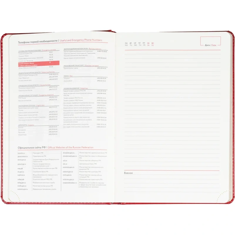 Размер ежедневника составляет 14.5×21.5 см. Внутри размещён календарь на два года. Модель подходит под персонализацию.