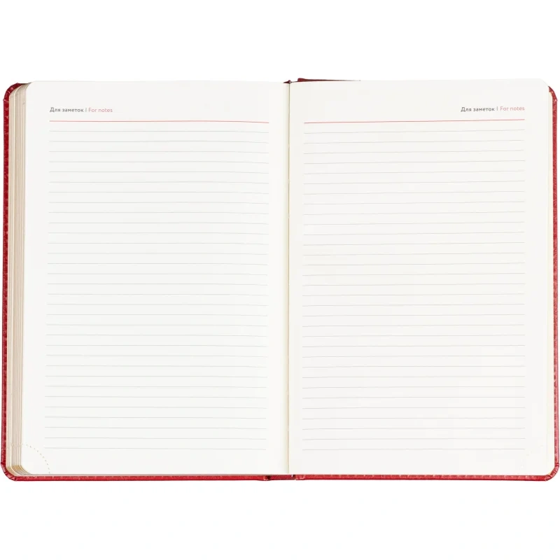 Ежедневник формата A5 подходит для записи планов, задач и заметок без ограничения по датам. Обложка выполнена из искусственной кожи бордового цвета с тиснением и оформлена в однотонном стиле. Твёрдый переплёт сохраняет форму изделия, а сшивка внутреннего блока обеспечивает надёжность при повседневном использовании.