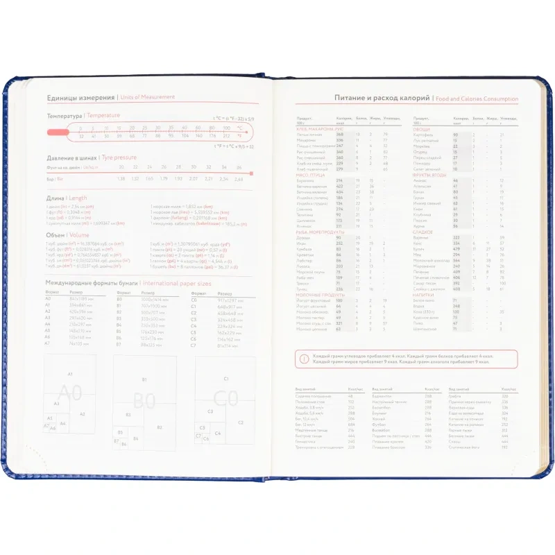Блок состоит из 160 листов тонированной офсетной бумаги плотностью 80 г/кв.м. Страницы размечены в линейку и напечатаны в две краски. Вырубка и перфорация уголков упрощают навигацию. Скруглённые углы листов делают перелистывание удобным. Золотистый обрез придаёт изделию элегантный внешний вид.