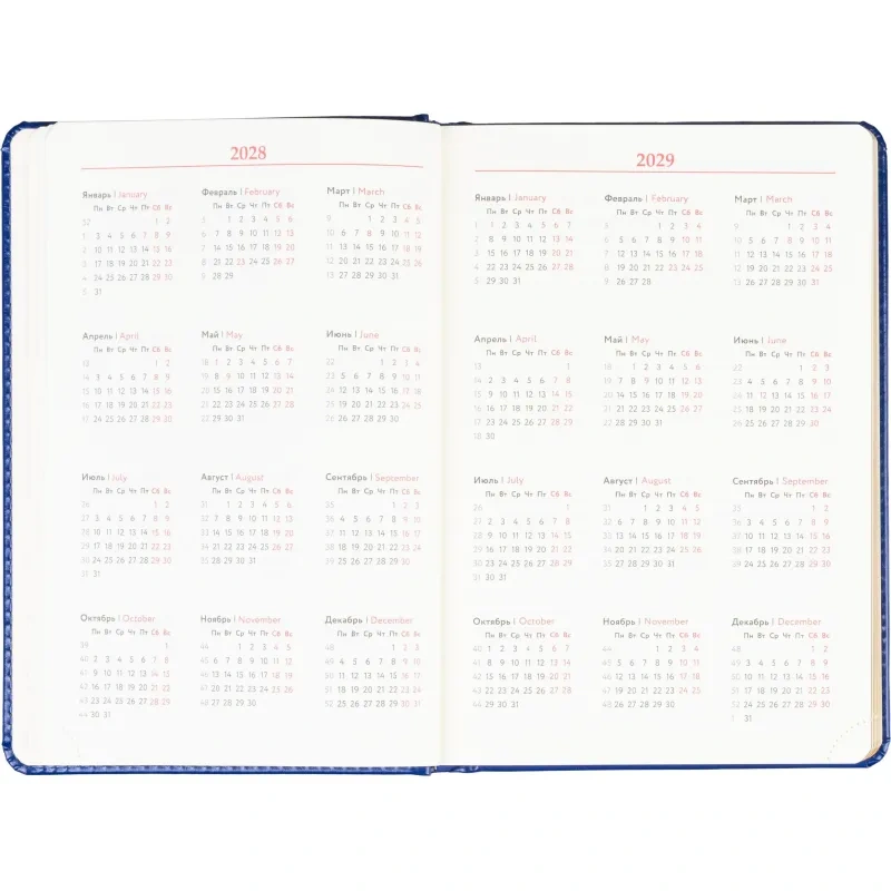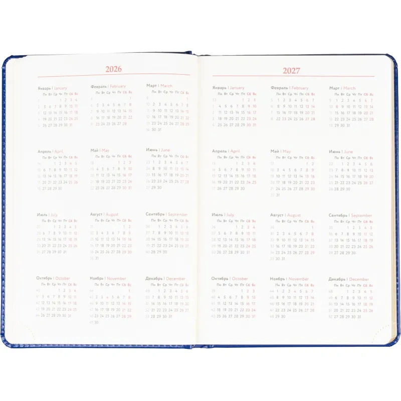 Размер ежедневника — 10.8×15.3 см. Внутри расположен календарь на два года. Модель подходит под персонализацию.