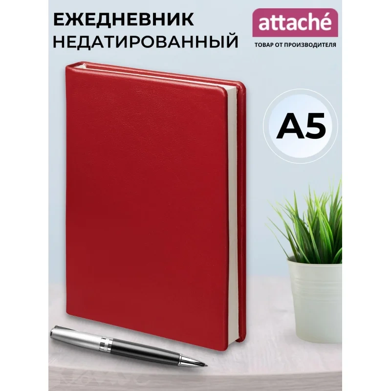 Ежедневник недатированный Attache Golland glos A5, красный, нат.кожа, 160 листов