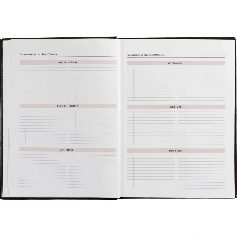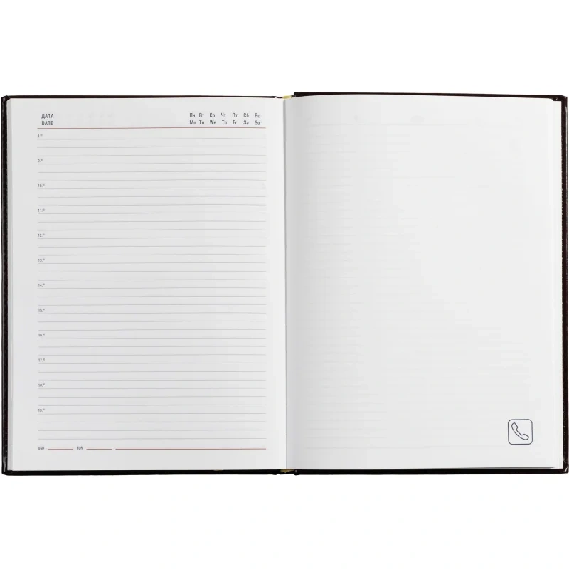 Ежедневник произведён в России, тип крепления — сшивка. Ежедневник подходит для персонализации.