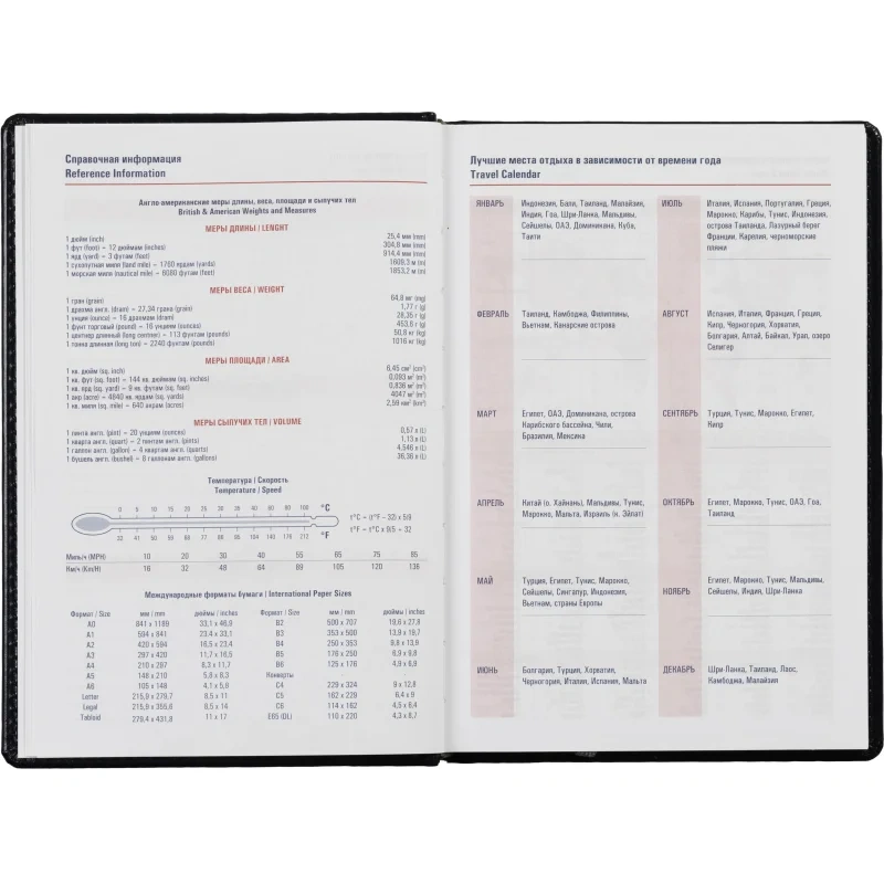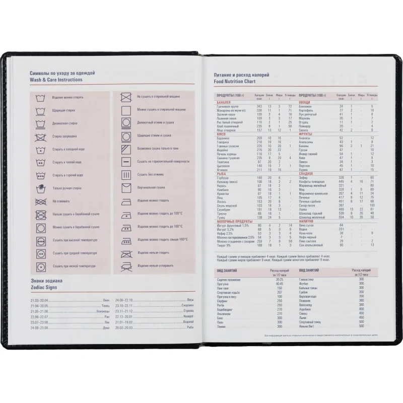В начале ежедневника размещён справочный блок с телефонами первой необходимости, а в конце — телефонная алфавитная книга. Кроме того, имеется информационно-справочный блок.