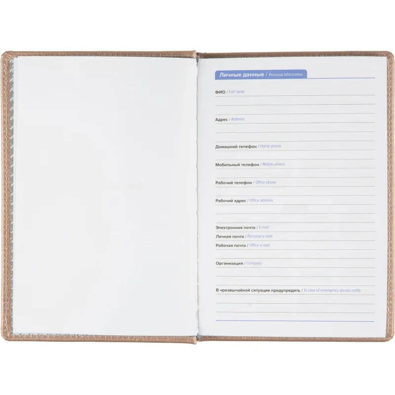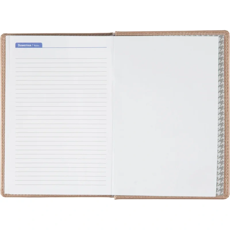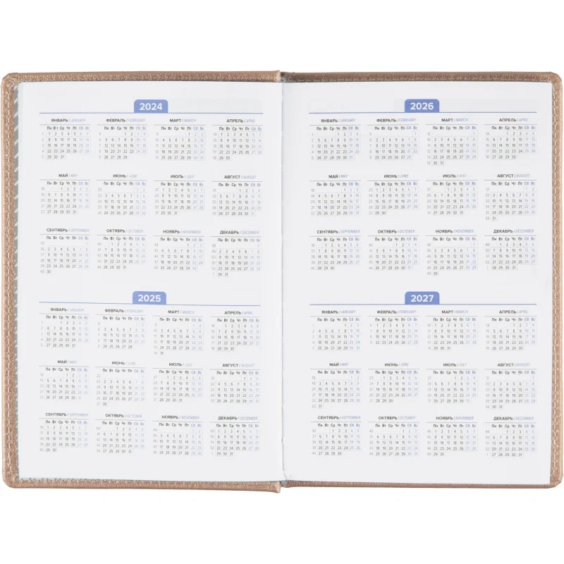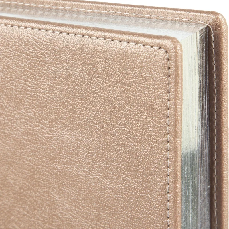Ежедневник недатированный Attache Selection Metal искусственная кожа А5 160 листов розовый (серебристый обрез)Ежедневник (150x213 мм) подойдёт для организации повседневных дел и системного ведения записей. Обложка выполнена из искусственной кожи с эффектом металлик, имитирующим натуральную кожу. Пудровый оттенок делает внешний вид универсальным и современным. По периметру обложки выполнена аккуратная прострочка нитью в тон для повышения износостойкости. Для быстрого поиска нужной страницы предусмотрено серебристое ляссе.Внутренний блок содержит 160 листов тонированной офсетной бумаги плотностью 80 г/кв.м, разлинованной в линейку и прошитой для долговечности. Обрез блока окрашен в серебристый цвет, что подчёркивает общий дизайн изделия. В ежедневнике предусмотрен информационно-справочный раздел: праздники, международные коды городов России, цифровые коды ГИБДД, справочник неметрических единиц с переводом в метрические и таблица размеров одежды. Для сортировки записей предусмотрен алфавитный блок без вырубки. Встроен календарь на 2024-2027 годы. Поставляется в термоусадочной плёнке.