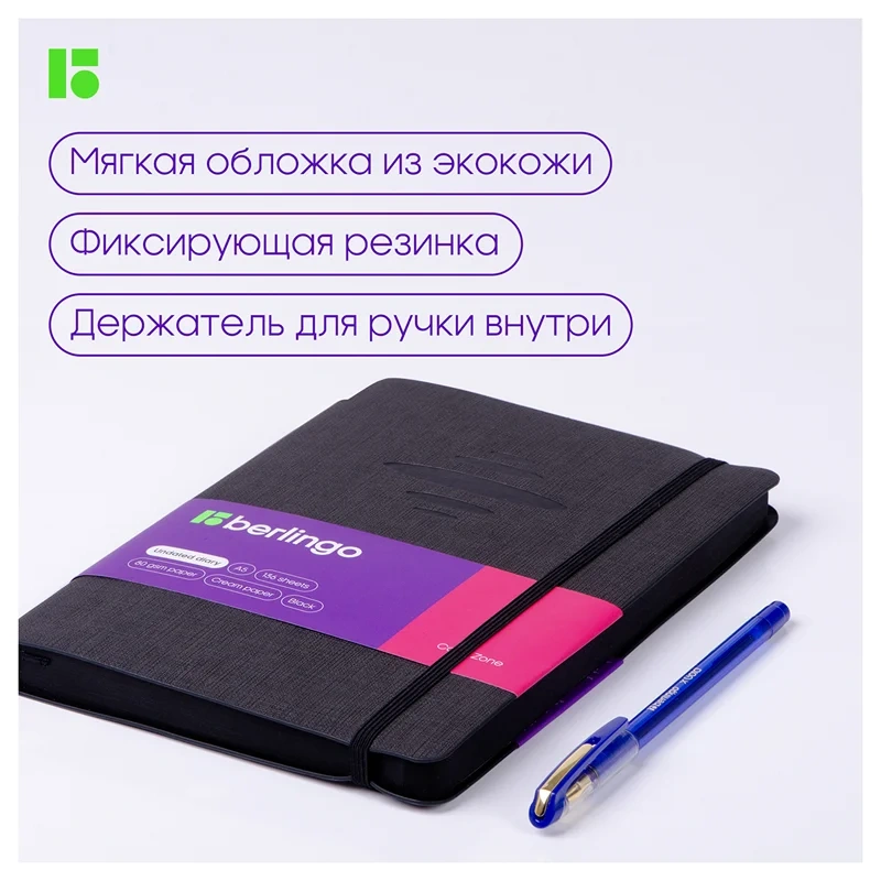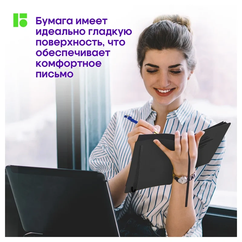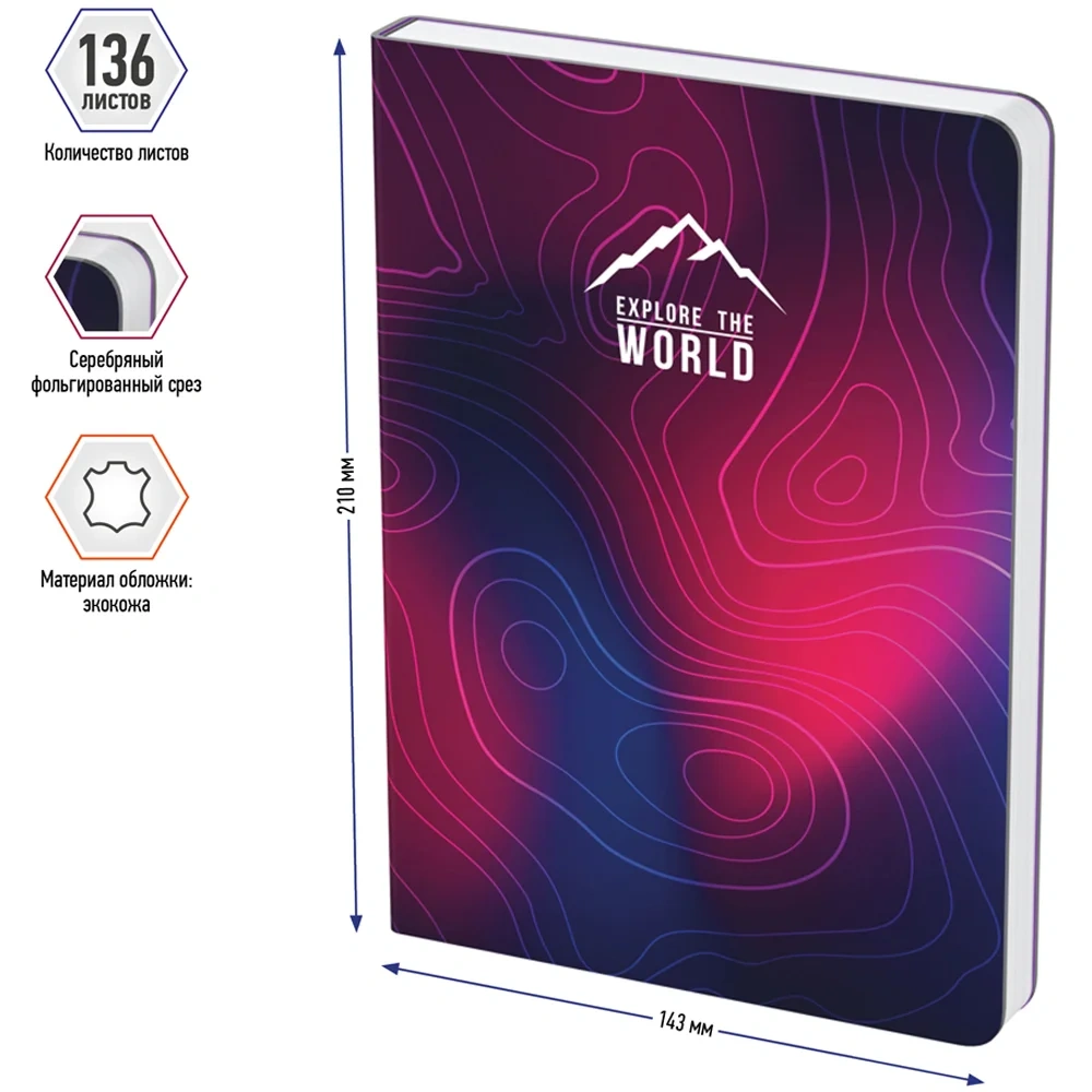 Блок состоит из 136 листов тонированной офсетной бумаги плотностью 80 г/кв.м. Страницы напечатаны в две краски и размечены в линейку. Скруглённые углы листов повышают комфорт при перелистывании. Зелёный обрез подчёркивает аккуратный и выразительный внешний вид изделия.