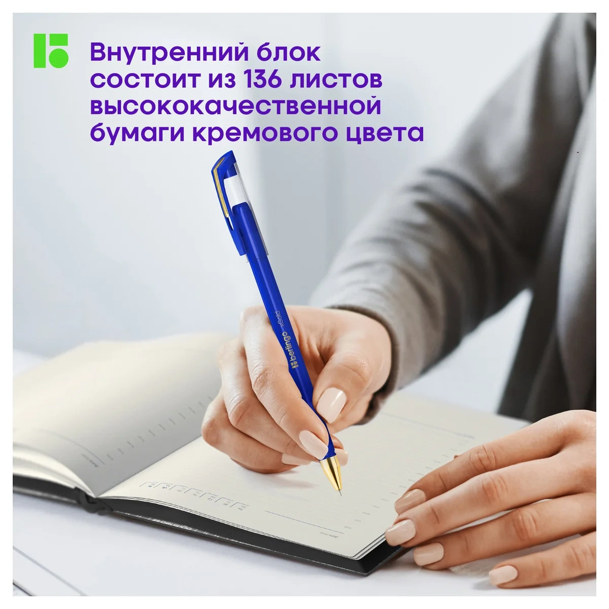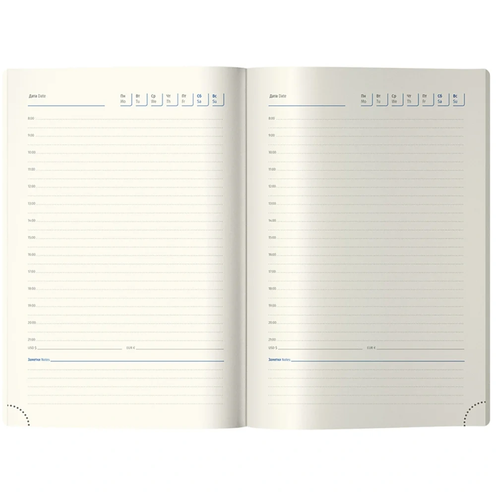 Размер ежедневника — 14.2×20.5 см. Внутри размещён календарь на два года. Модель подходит под персонализацию.