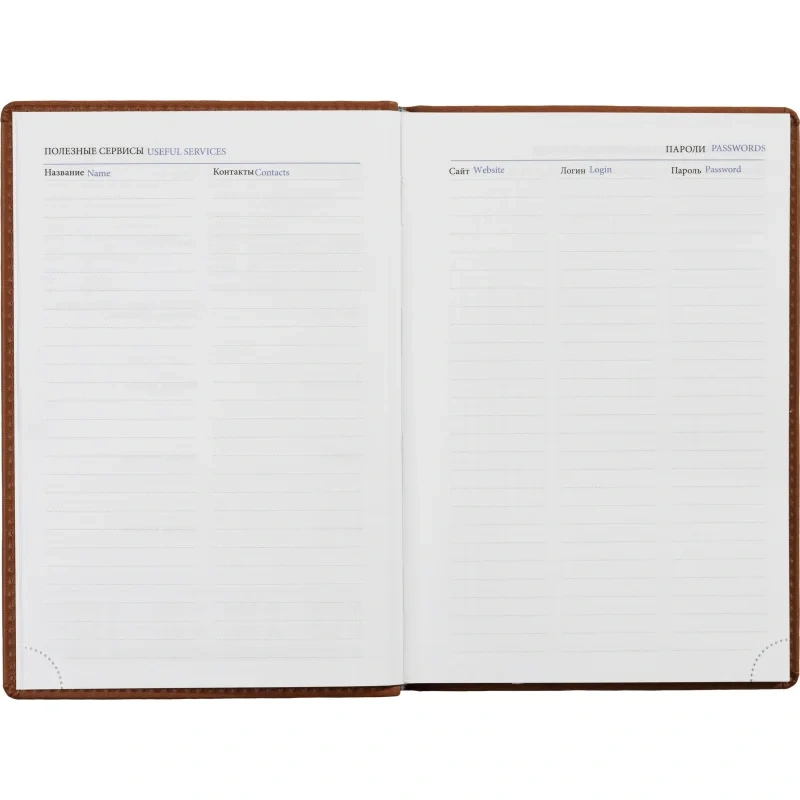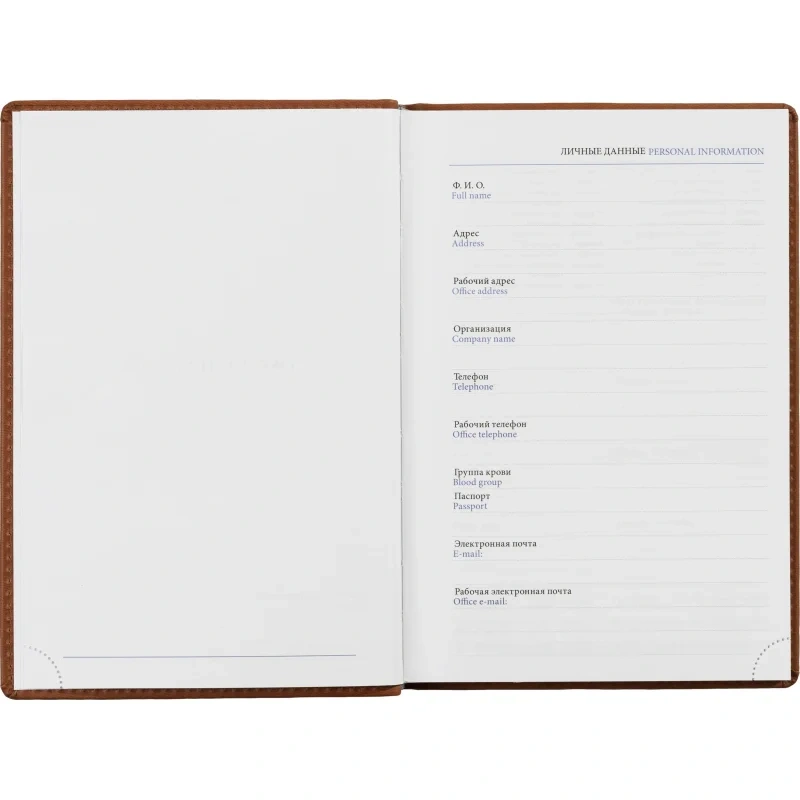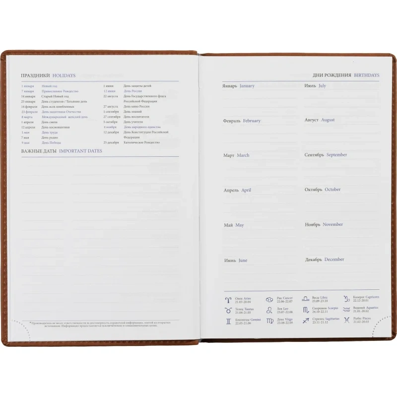 Изготовлен в России, тип крепления — сшивка. Ежедневник подходит для персонализации.