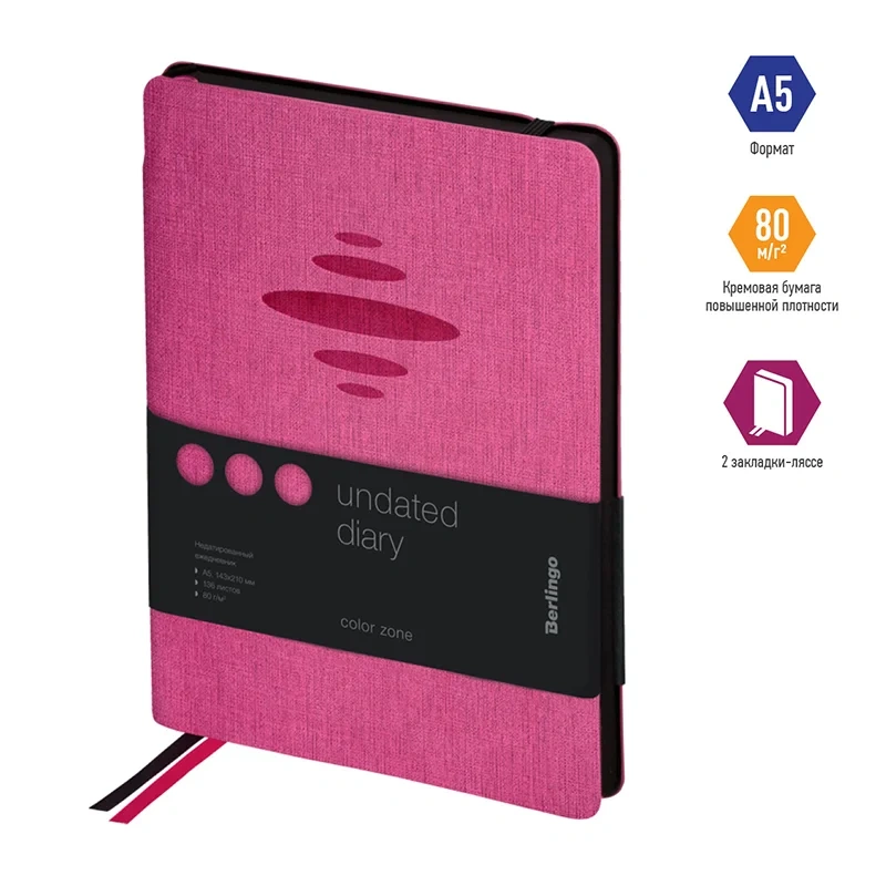 Ежедневник недатированный Berlingo Color Zone фуксия, А5, 136 листов, кожзам