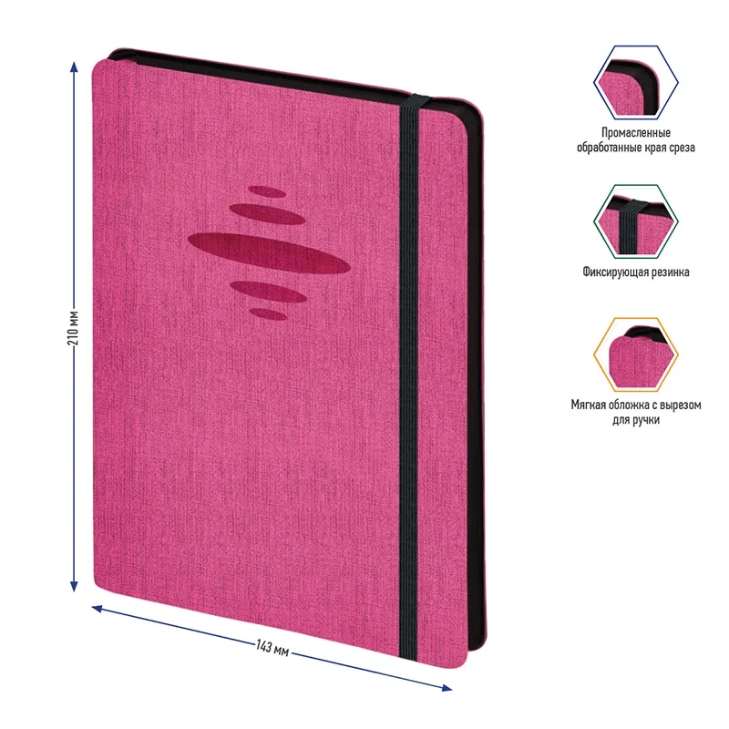 Стильный недатированный ежедневник Berlingo Color Zone формата А5 с ультрамягкой обложкой из экокожи. Обложка с тиснением цвета фуксии ярко контрастирует с черным срезом. Для удобства внутри корешка расположен специальный карман для ручки, ежедневник можно зафиксировать вертикальной резинкой. Внутренний блок состоит из 136 листов высококачественной кремовой бумаги повышенной плотности 80 г/м? с пантонной печатью в 2 краски. Недатированный ежедневник Berlingo Color Zone представлен в размере 143 на 210 мм.