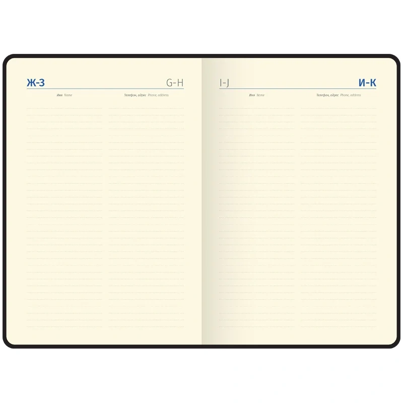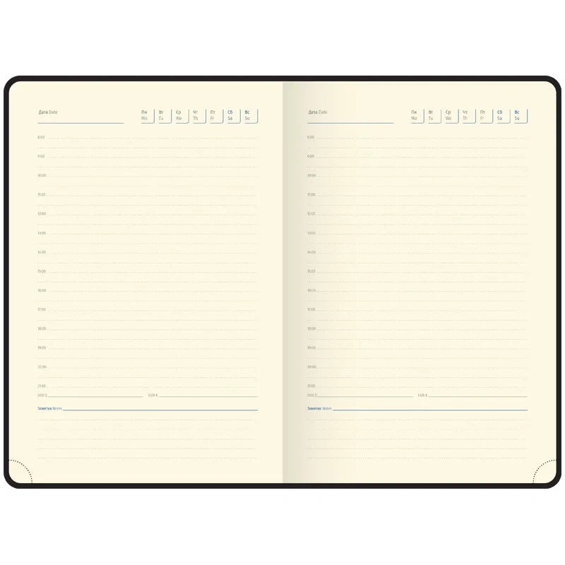 Для удобства внутри корешка расположен специальный карман для ручки, а ежедневник можно зафиксировать вертикальной резинкой. Перфорированные уголки и 2 закладки-ляссе обеспечивают комфорт при использовании. Внутри расположены отрывные заметки, бланки извещения о ДТП и справочные материалы. Ежедневник подходит под персонализацию, а в комплект входит 3 набора стикеров, что делает его приятным подарком.