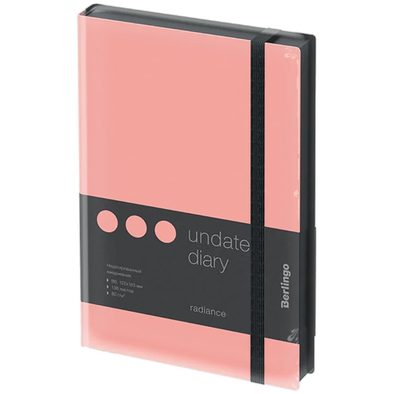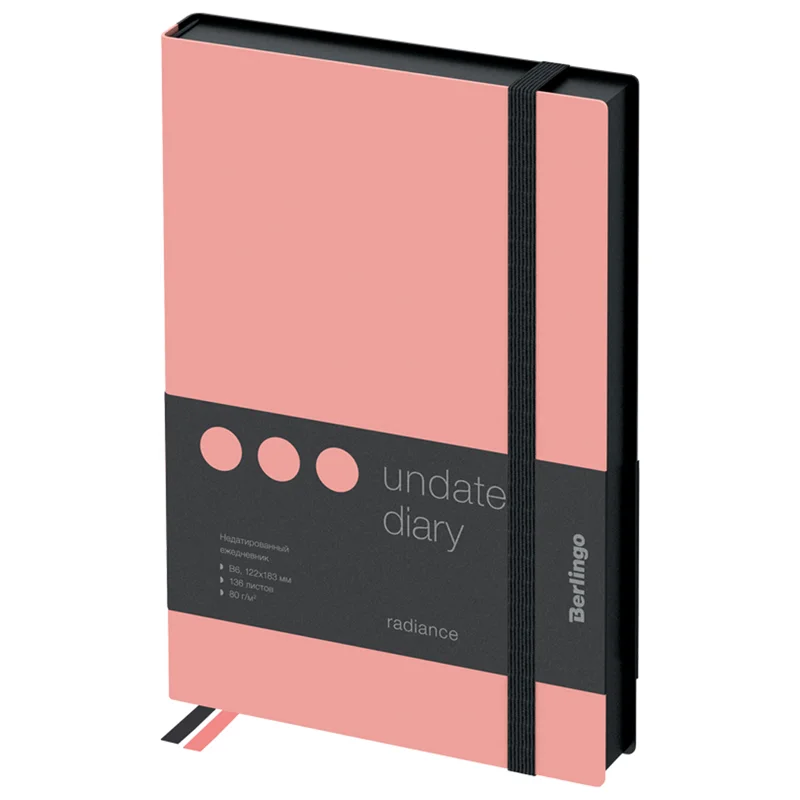 Стильный недатированный ежедневник Berlingo Instinct формата B6 с ярким цветным контрастным срезом и ультрамягкой обложкой из высококачественной экокожи. Нежный цвет обложки фламинго создаёт эффектный контраст с черным цветом среза. Внутренний блок состоит из 136 листов высококачественной кремовой бумаги повышенной плотности 80 г/м? с пантонной печатью в 2 краски. Недатированный ежедневник Berlingo Instinct представлен в размере 122 на 183 мм.