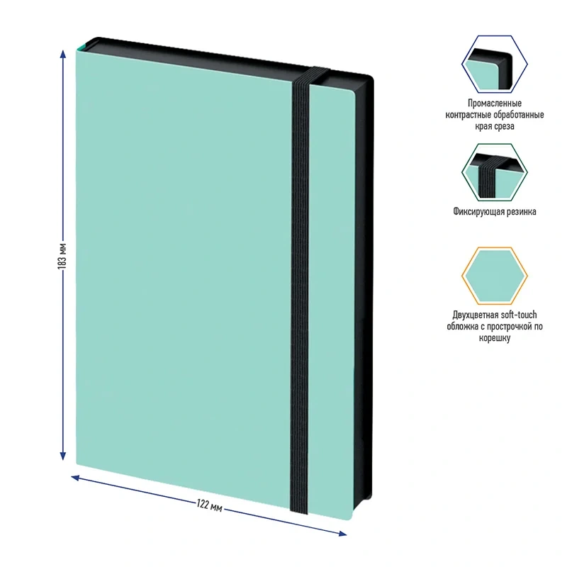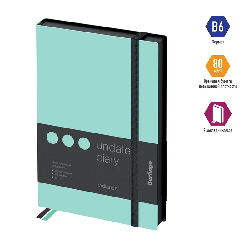 Стильный недатированный ежедневник Berlingo Instinct формата B6 с ярким цветным контрастным срезом и ультрамягкой обложкой из высококачественной экокожи. Яркий мятный цвет обложки создаёт эффектный контраст с черным цветом среза. Внутренний блок состоит из 136 листов высококачественной кремовой бумаги повышенной плотности 80 г/м? с пантонной печатью в 2 краски. Недатированный ежедневник Berlingo Instinct представлен в размере 122 на 183 мм.