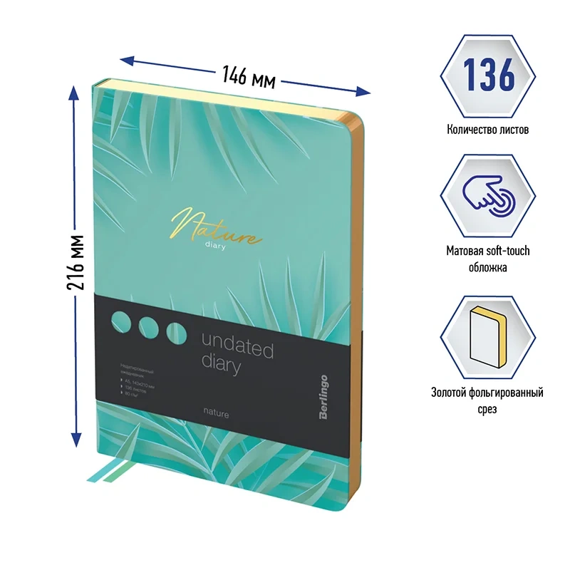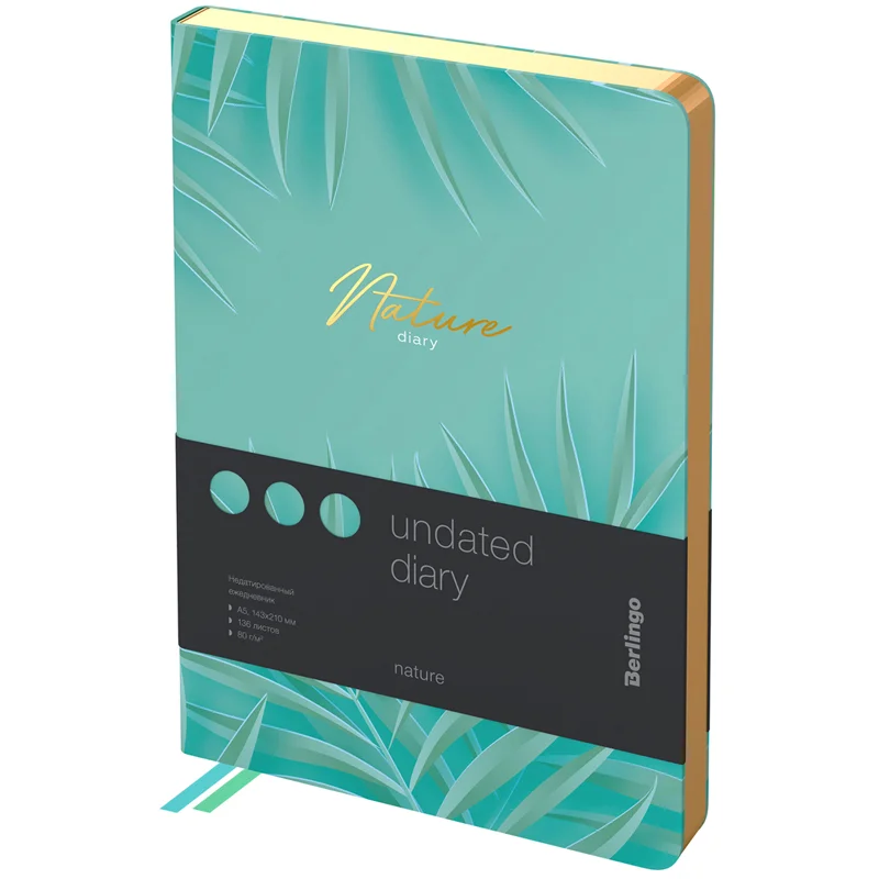 Ежедневник недатированный Berlingo Nature А5, 136 листов, золотой срез