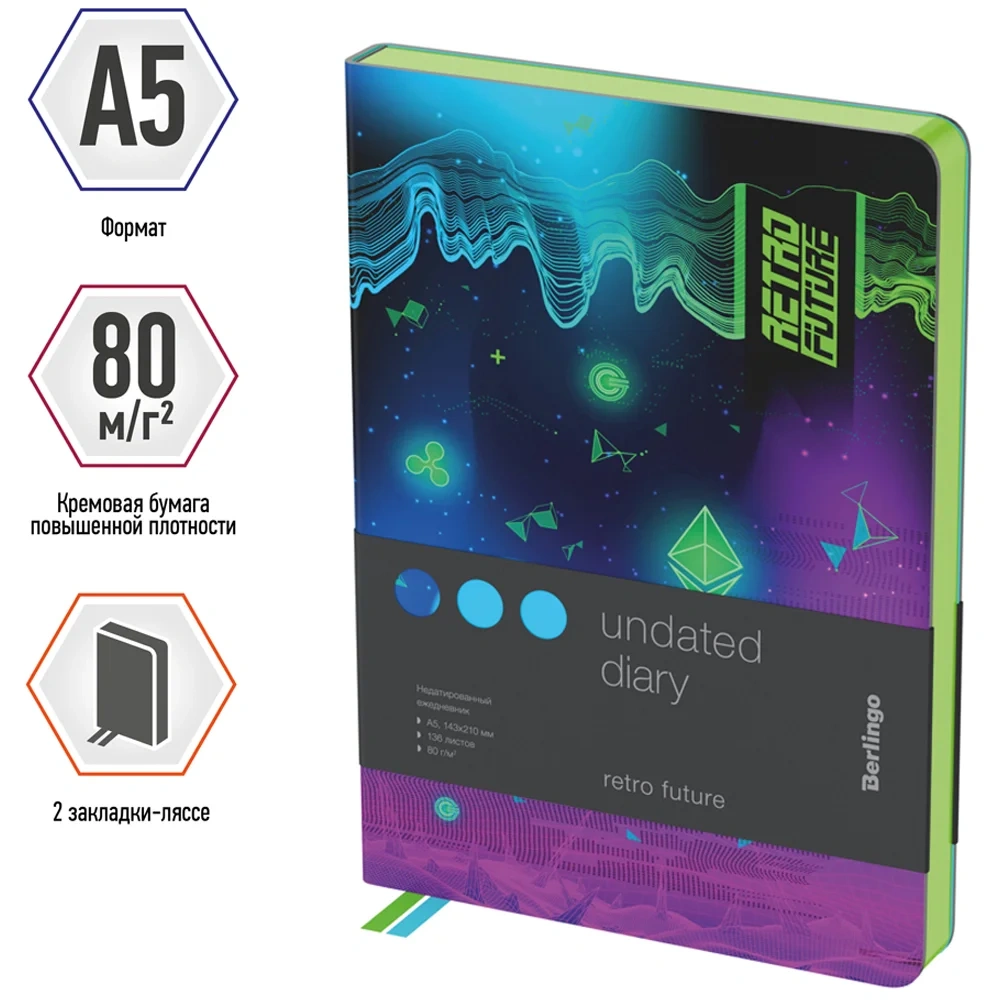 Ежедневник недатированный Berlingo Retro Future А5, 136 листов, зеленый срез