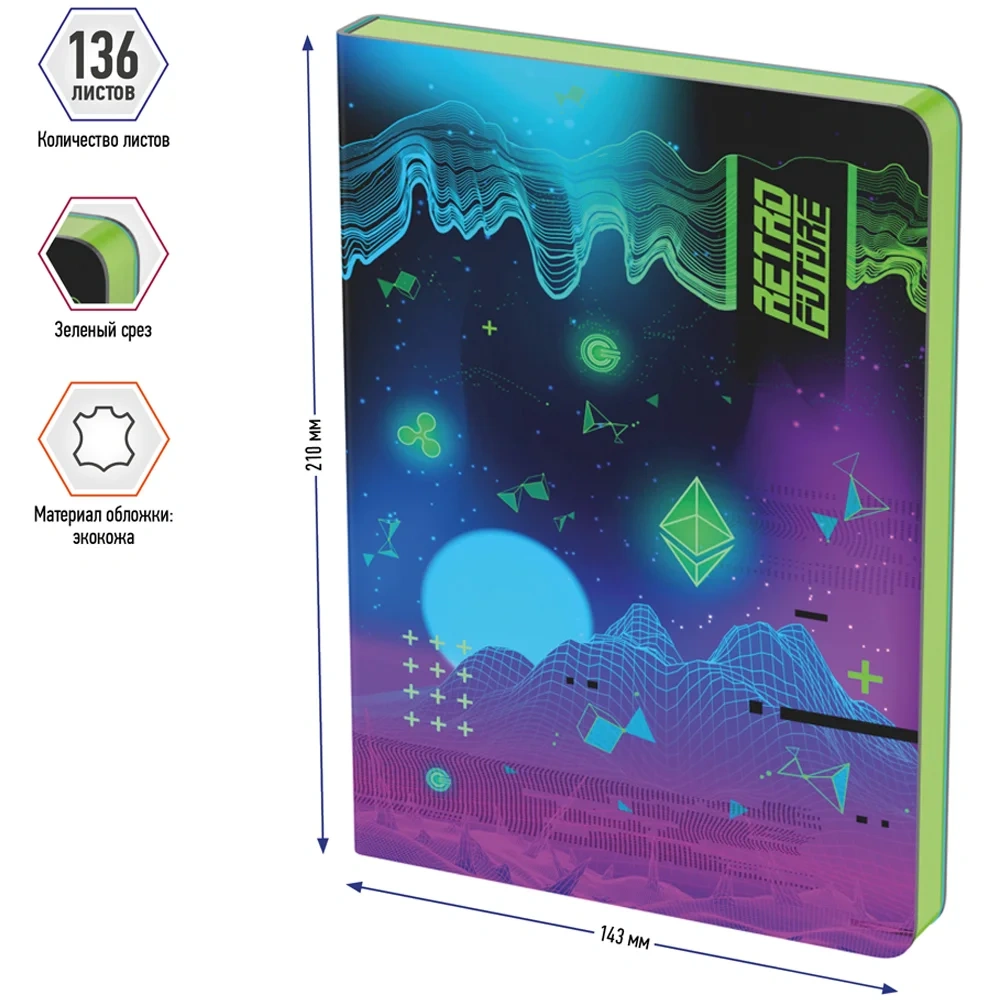 Стильный недатированный ежедневник Berlingo Retro Future формата A5 с ярким цветным контрастным срезом и ультрамягкой обложкой из высококачественной экокожи. Яркий дизайн коллекционной серии Berlingo Retro Future. Внутренний блок состоит из 136 листов высококачественной кремовой бумаги повышенной плотности 80 г/м? с пантонной печатью в 2 краски. Представлен в размере 143 на 210 мм.