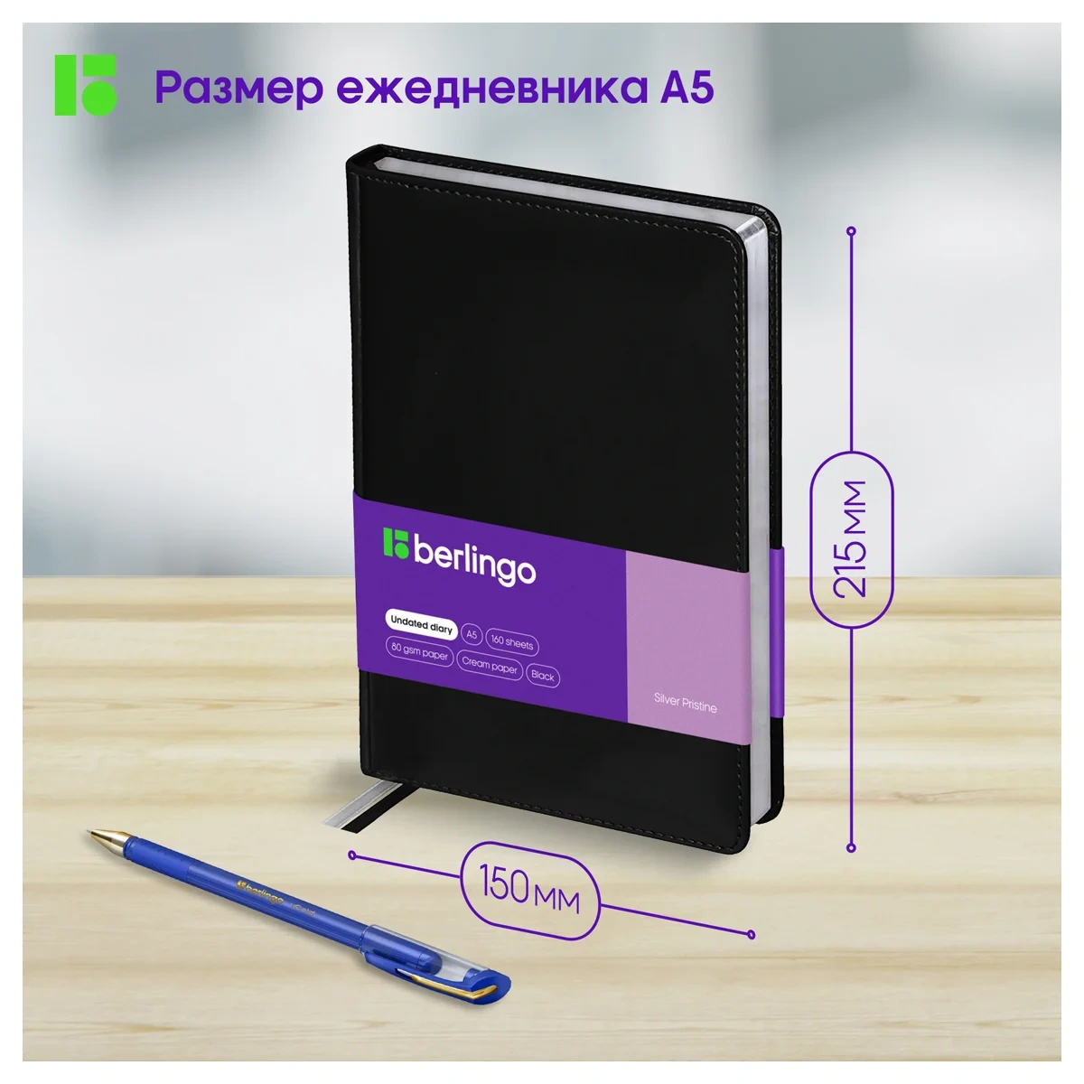 Ежедневник недатированный Berlingo Silver Pristine черный, А5, 160 листов, кожзам