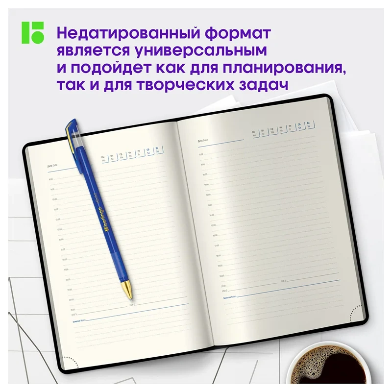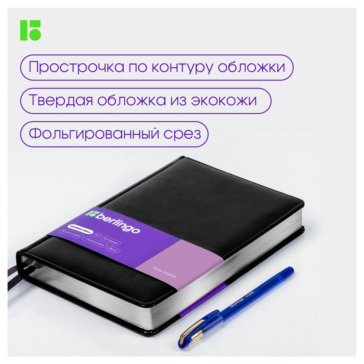 Глянцевый недатированный ежедневник Berlingo Silver Pristine формата А5 с твердой обложкой из экокожи и поролоновой прослойкой идеален для повседневного использования. Сочетание серебряного фольгированного среза и черной обложки делает ежедневник элегантной деталью делового образа. Внутренний блок состоит из 160 листов высококачественной кремовой бумаги повышенной плотности 80 г/м? с пантонной печатью в 2 краски. Размер недатированного ежедневника – 143 на 210 мм.