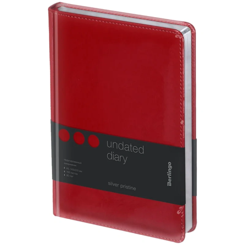 Глянцевый недатированный ежедневник Berlingo Silver Pristine формата А5 с твердой обложкой из экокожи и поролоновой прослойкой идеален для повседневного использования. Сочетание серебряного фольгированного среза и красной обложки делает ежедневник элегантной деталью делового образа. Внутренний блок состоит из 160 листов высококачественной кремовой бумаги повышенной плотности 80 г/м? с пантонной печатью в 2 краски. Размер недатированного ежедневника – 143 на 210 мм.