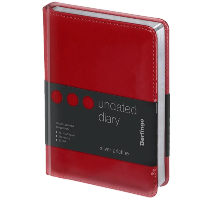 Ежедневник недатированный Berlingo Silver Pristine красный, А6, 160 листов, кожзам
