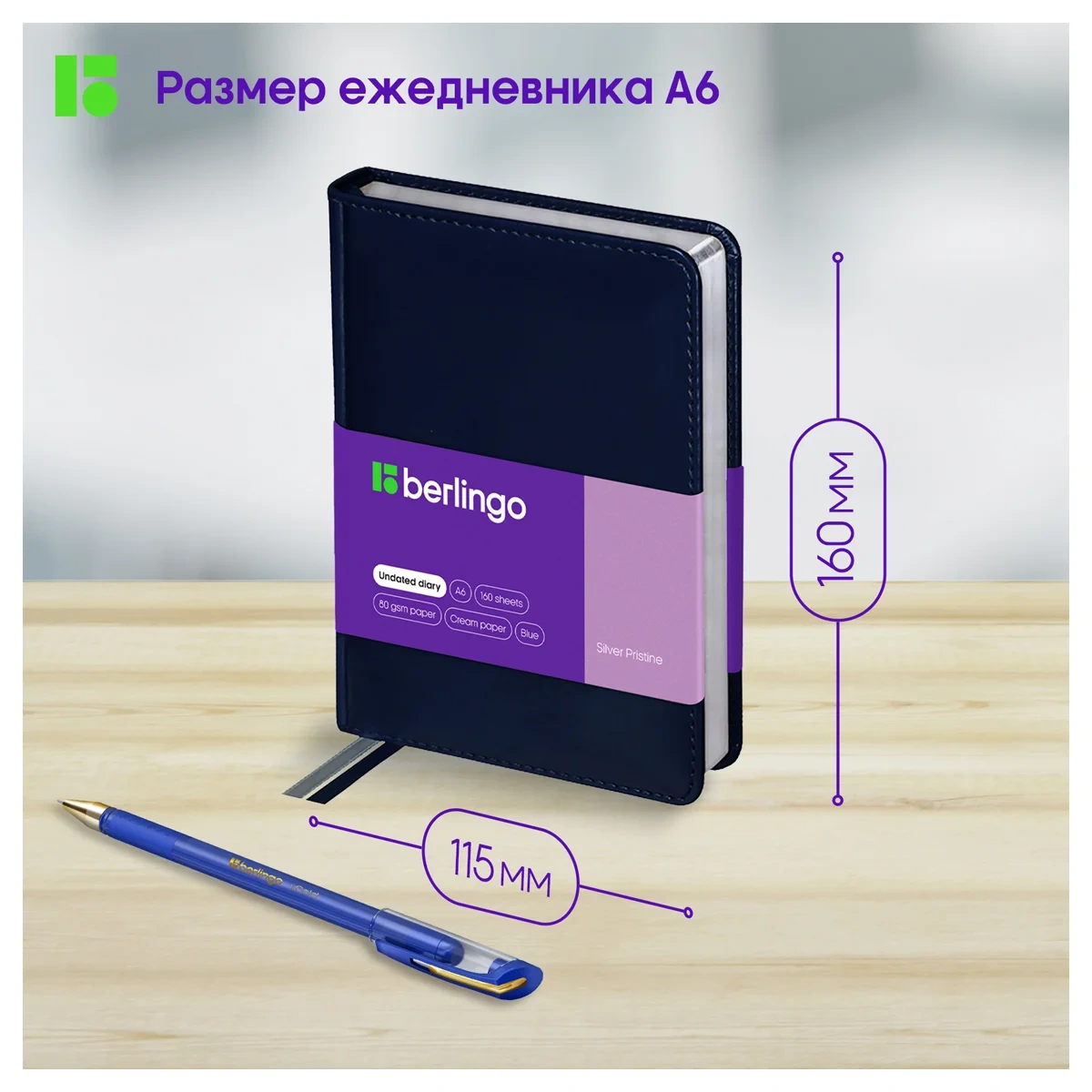 Ежедневник недатированный Berlingo Silver Pristine синий, А6, 160 листов, кожзам