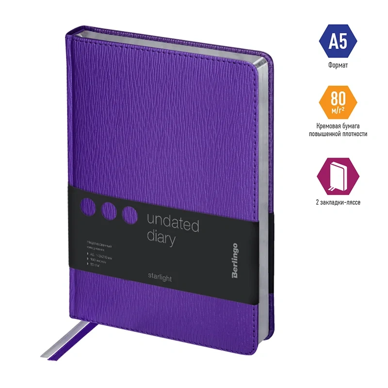 Ежедневник недатированный Berlingo Starlight фиолетовый, А5, 160 листов, кожзам