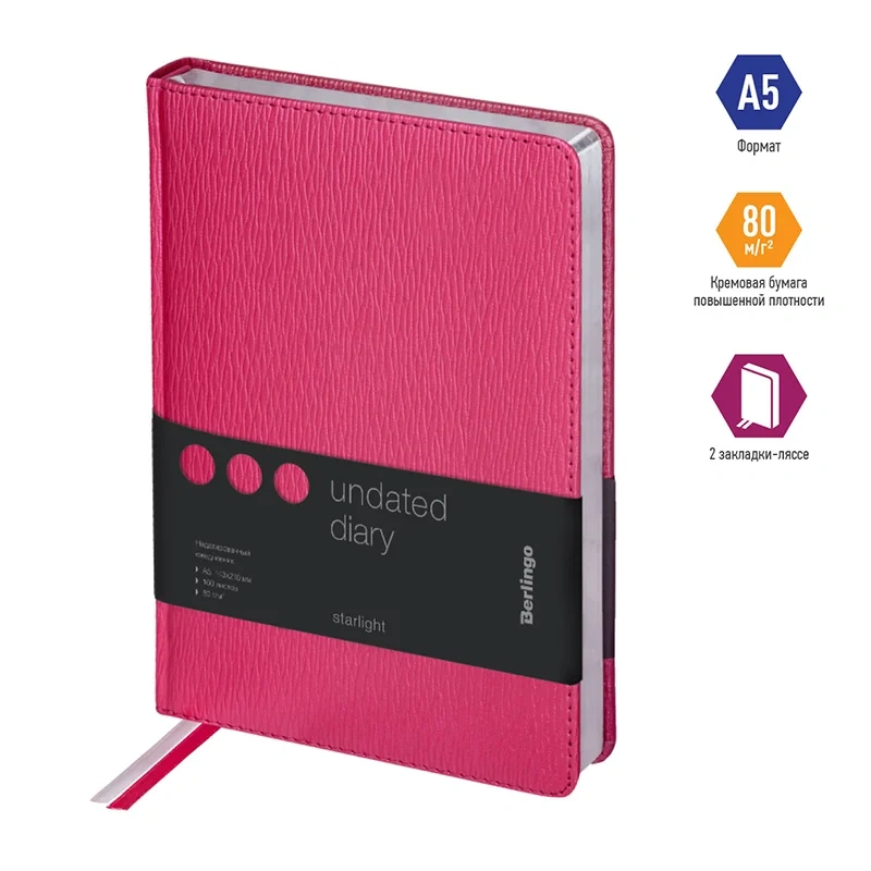 Ежедневник недатированный Berlingo Starlight фуксия, А5, 160 листов, кожзам