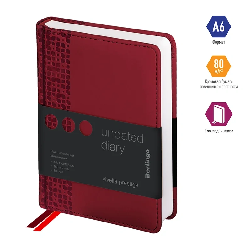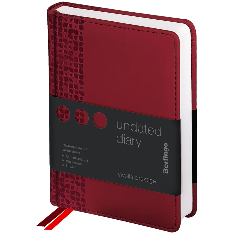 Ежедневник недатированный Berlingo Vivella Prestige бордовый, А6, 160 листов, кожзам