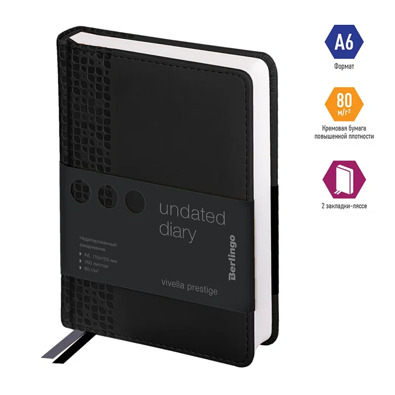 Ежедневник недатированный Berlingo Vivella Prestige черный, А6, 160 листов, кожзам