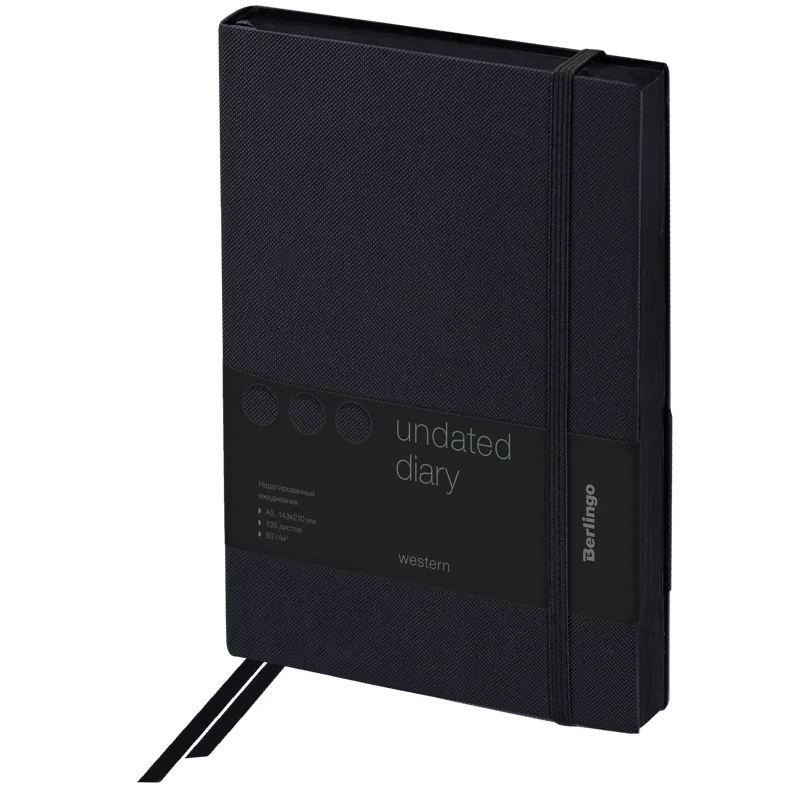 Ежедневник недатированный Berlingo Western черный, А5, 136 листов, кожзам