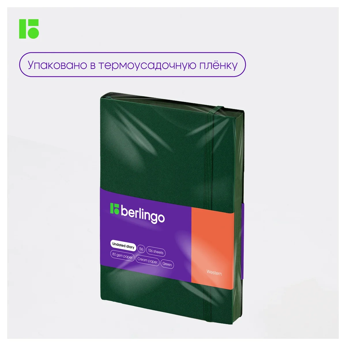Ежедневник недатированный Berlingo Western зеленый, А6, 136 листов, кожзам