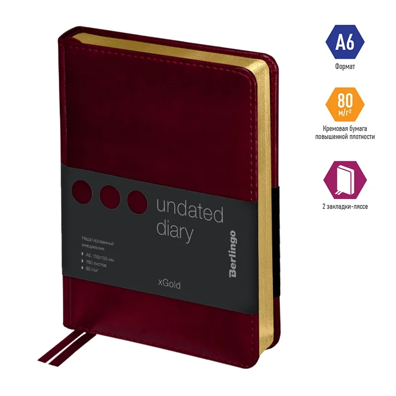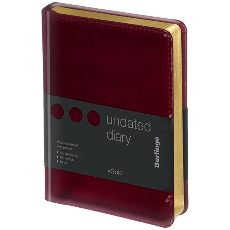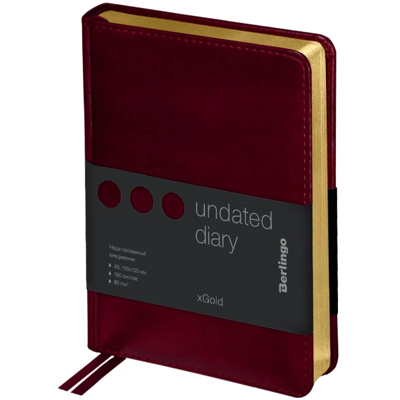 Ежедневник недатированный Berlingo xGold бордовый, А6, 160 листов, кожзам