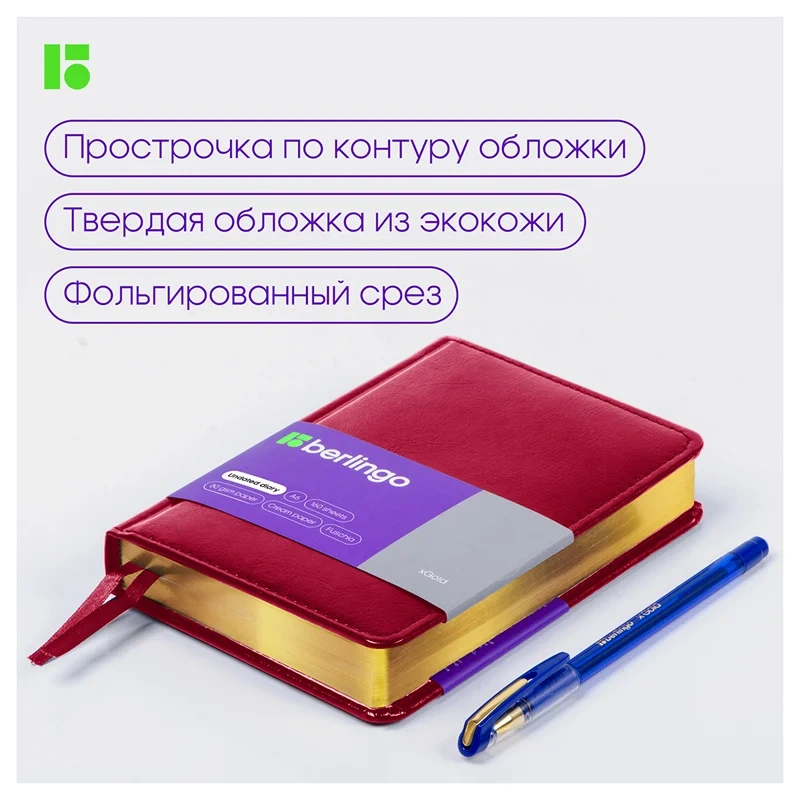 Компактный недатированный ежедневник Berlingo xGold формата А6 с твердой обложкой из экокожи и поролоновой прослойкой идеален для повседневного использования. Золотой фольгированный срез красиво подчеркивает обложку цвета сочной фуксии. Внутренний блок состоит из 160 листов высококачественной кремовой бумаги повышенной плотности 80 г/м? с пантонной печатью в 2 краски. Размер недатированного ежедневника – 110 на 155 мм.