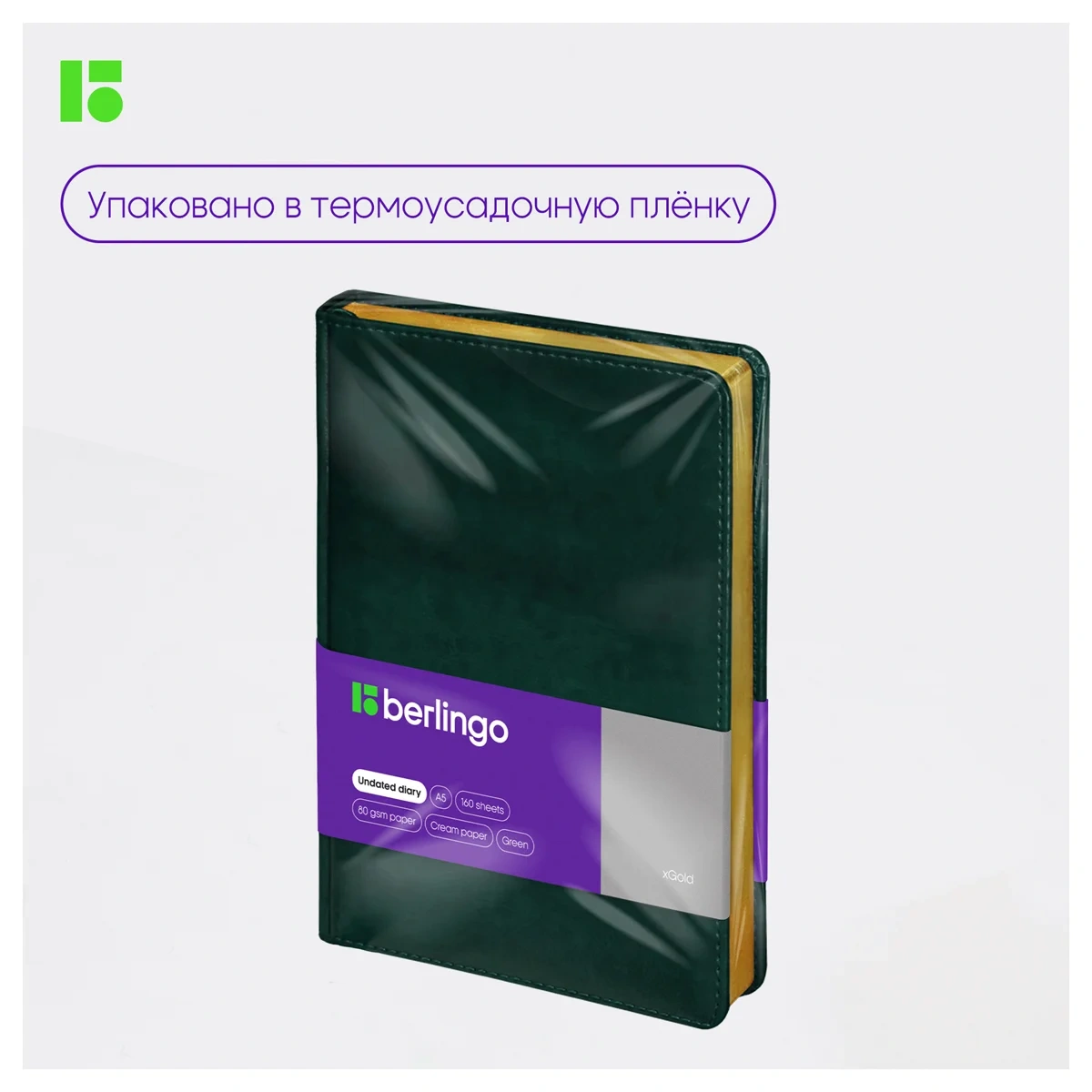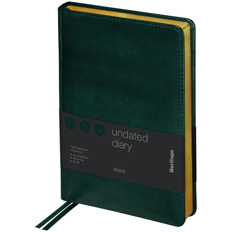 Ежедневник недатированный Berlingo xGold зеленый, А5, 160 листов, кожзам