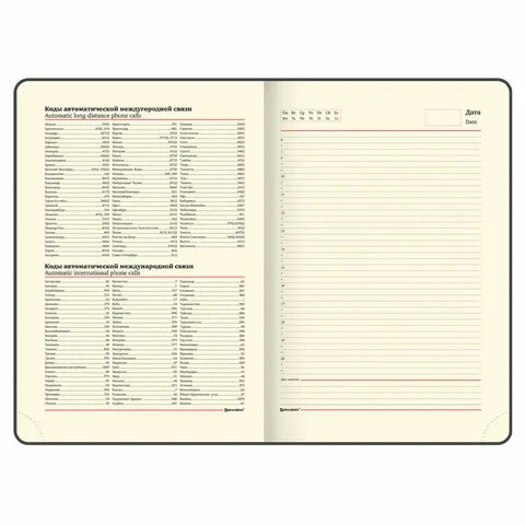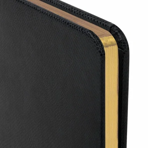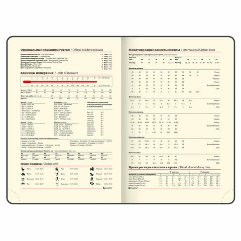 Твердая обложка стилизована под кожу рептилии классического черного цвета. Подходит для горячего тиснения. Срез ежедневника фольгирован золотой фольгой, что придает ему особый шарм. На форзаце располагаются карты России и мира. Дополнением является закладка-ляссе, с помощью которой при необходимости можно быстро открыть ежедневник на нужной странице. Помимо прочего, ежедневник снабжен обширным справочным материалом. В конце ежедневника есть 7 страниц для записей и заметок.