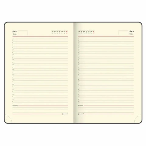 Внутренний блок включает 160 листов тонированной бумаги плотностью 70 г/м2. Каждая страничка имеет перфорированный угол. Благодаря большому формату А4 (210х297 мм) ежедневник удобно использовать как в офисе, так и на выездных деловых встречах.