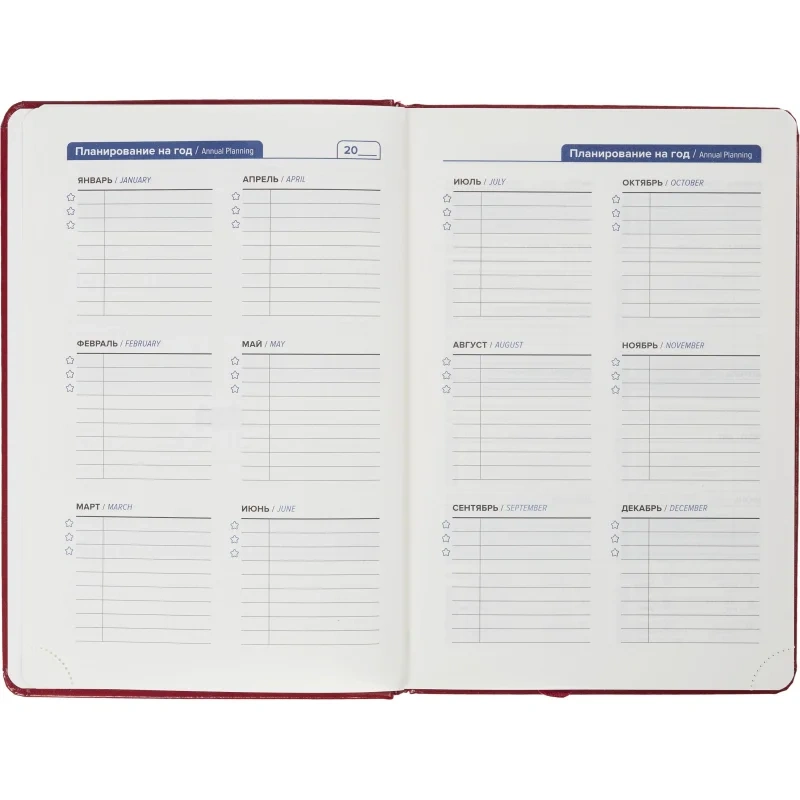 Ежедневник недатированный бордо, А5, 143х210мм, 160л, ATTACHE Priority Ежедневник недатированный - удобный и незаменимый помощник для внесения необходимых записей и планирования. Практичный размер А5 помещается в сумку и не занимает много места на столе. Твердая обложка с классическим дизайном и прострочкой по периметру выполнена из качественной искусственной кожи. Прошитый тип крепления надежно держит блок. Кол-во листов: 160. Цвет обложки: бордовый. Плотность бумаги: 70 г/кв.м. Блок: тонированный. Печать блока: 2 краски. Перфорация уголков: да. Размер ежедневника: 143x210 мм. Ориентация: вертикальная. Вид линовки: в линейку. Содержит информационно-справочный блок с календарем (2024 - 2027 гг.). Петля для ручки: нет. Ляссе: да.