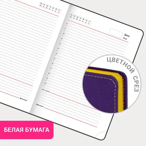 Срез и форзац ежедневника окрашены в контрастный цвет с обложкой, что придает изделию особый шарм.