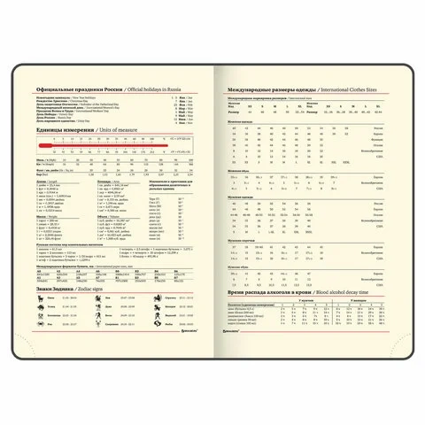 Внутренний блок включает 160 листов белой бумаги плотностью 70 г/м2. Каждая страничка имеет перфорированный угол. Благодаря большому формату А4 ежедневник удобно использовать как в офисе, так и на выездных деловых встречах. Твердая обложка, стилизованная под кожу крокодила, подходит для горячего тиснения. Дополнением является закладка-ляссе, с помощью которой при необходимости можно быстро открыть ежедневник на нужной странице. Помимо прочего ежедневник снабжен обширным справочным материалом.
