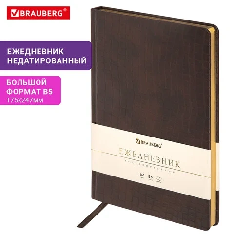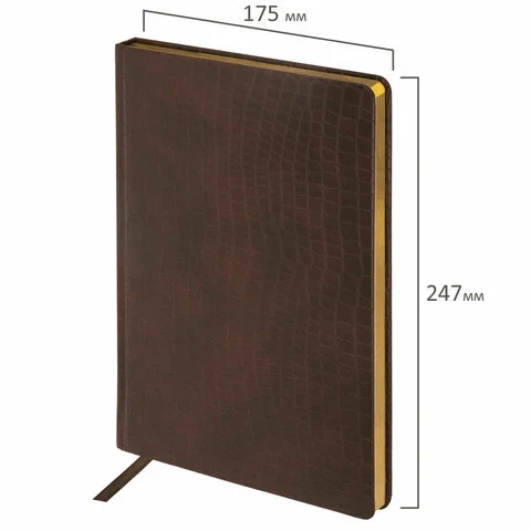 Ежедневник недатированный Brauberg Alligator темно-коричневый, А4, 160 листов, под матовую крокодиловую кожу