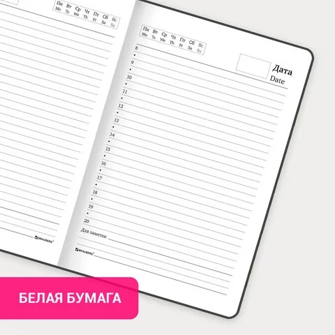 Отличительная особенность - это поля, где можно проставить даты. Они не пропечатаны, поэтому владелец может отводить на каждый день сколько угодно листов и записывать все важные сведения. В конце ежедневника есть 4 страницы для записей и заметок.
